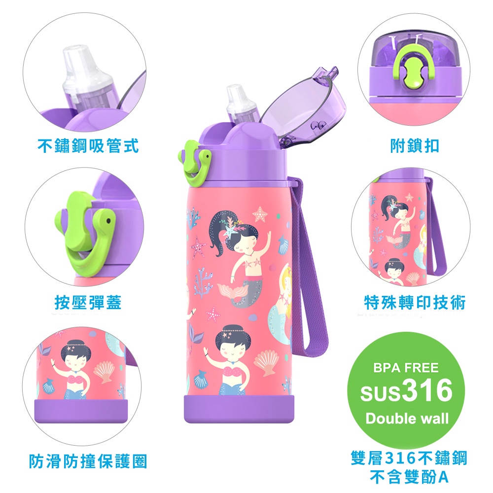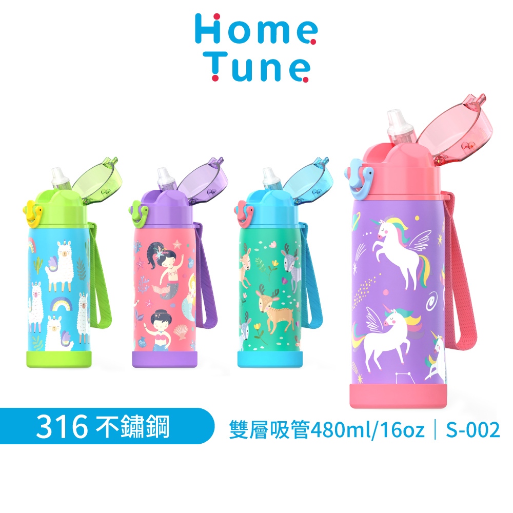 Home Tune家音 316不鏽鋼鎖扣彈蓋吸管式水壺480ml|雙層真空保溫瓶兒童保溫瓶兒童水壺吸管水壺_S-002美人魚(紫)|獨角獸(粉)|羊駝(綠)|小鹿(藍)Water Bottles & AccessoriesHome Tune家音