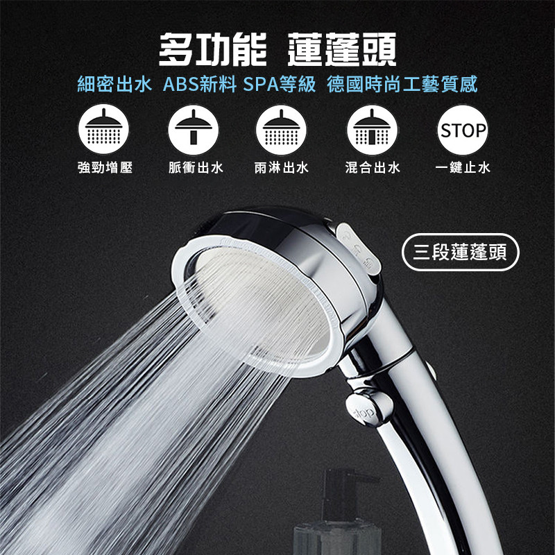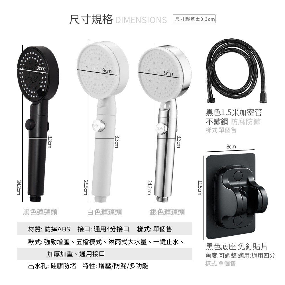 【LAVIDA嚴選】一鍵止水蓮蓬頭 電鍍 三段蓮蓬頭 一鍵止水 加壓省水 德國工藝 浴室 蓮蓬頭 花灑三段蓮蓬頭 (一鍵止水)|黑色蓮蓬頭 (一鍵止水)|白色蓮蓬頭 (一鍵止水)|銀色蓮蓬頭 (一鍵止水)|黑色1.5米加密管|黑色底座Showerheads & Bidet SpraysLAVIDA 育兒好好玩!