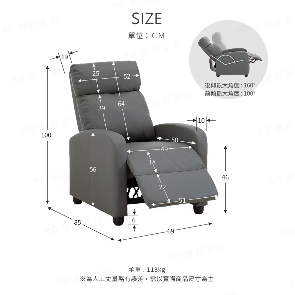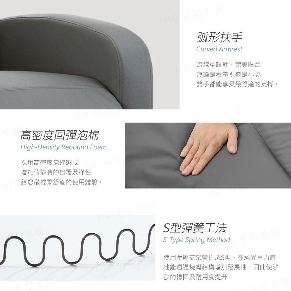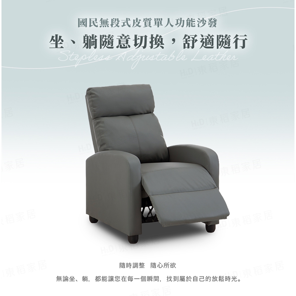 【H&D 東稻家居】國民無段式皮質單人功能沙發 (孝親椅 美容椅 休閒椅 美甲椅 長照)【396】DIY自行組裝/送一樓灰色|黑色|咖色SofasH&D東稻家居