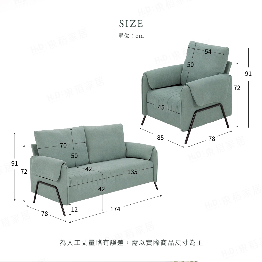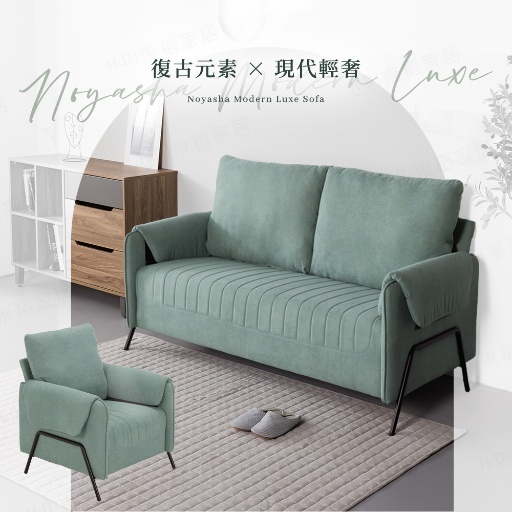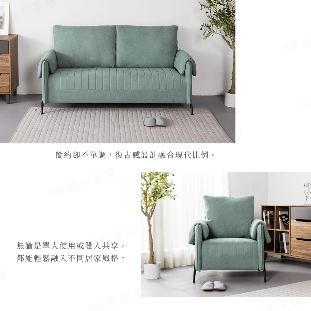 【H&D東稻家居】諾雅莎輕奢1+2沙發組 湖水綠單人沙發椅 雙人沙發椅 復古沙發 毛絨布沙發【N2409A】雙人沙發|單人+雙人沙發二件組|單人沙發SofasH&D東稻家居