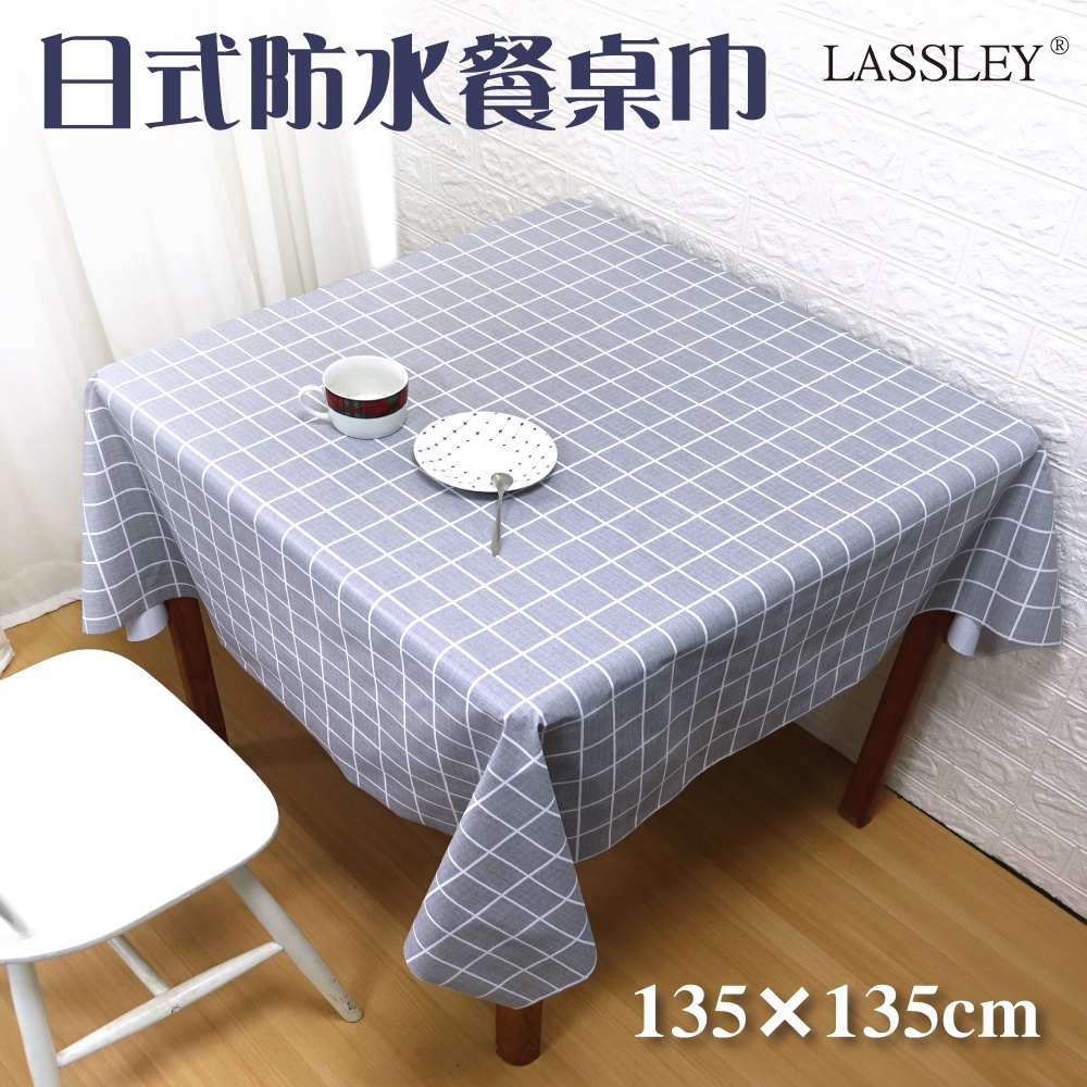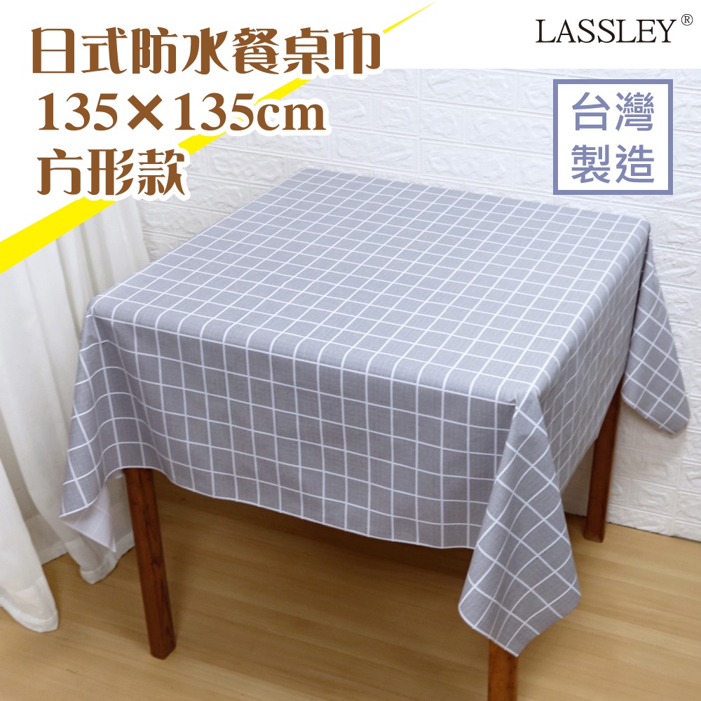 【LASSLEY】日式防水桌巾-方形135X135cm(台灣製造-正方形茶几巾|餐桌巾|格紋桌布)