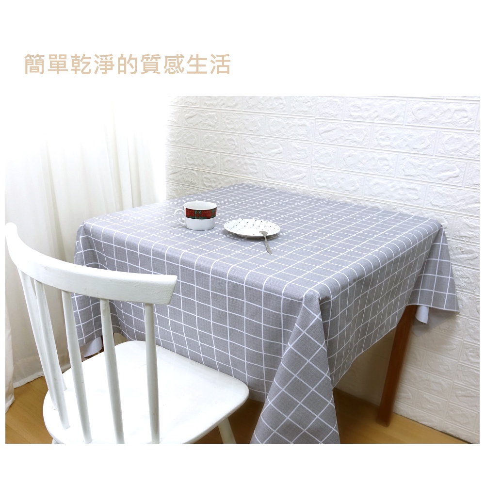 【LASSLEY】日式防水桌巾-方形135X135cm(台灣製造-正方形茶几巾|餐桌巾|格紋桌布)灰格Table ClothsLASSLEY蕾絲妮居家生活館