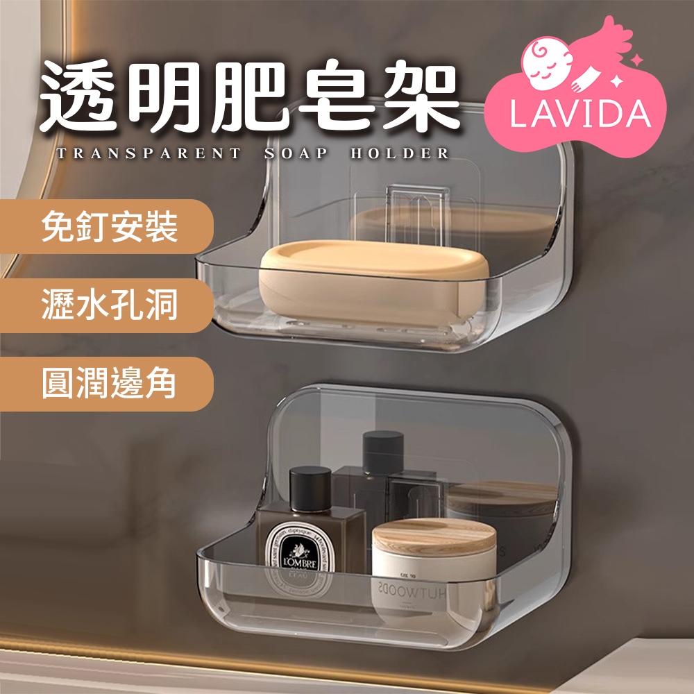【LAVIDA嚴選】透明肥皂架 香皂架 置物架 壁掛架 收納架 浴室收納架 肥皂盒 可瀝水 無痕 免釘 黏貼透白|透黑Soap Dispensers, Holders & BoxesLAVIDA 育兒好好玩!