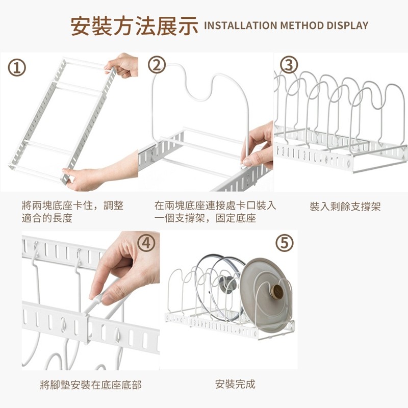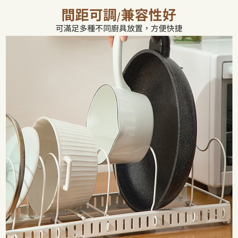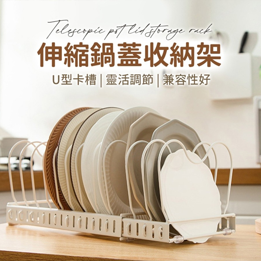 【LAVIDA嚴選】伸縮鍋蓋架 伸縮收納架 間距可調 鍋子收納 鍋具置物架 鍋子收納架 鍋蓋收納架 鍋具廚房收納A.白|XKitchen RacksLAVIDA 育兒好好玩!
