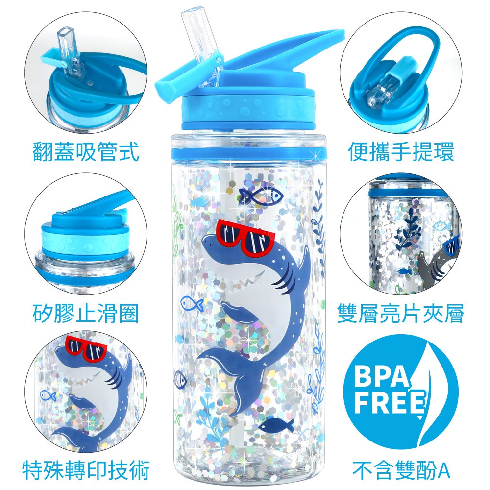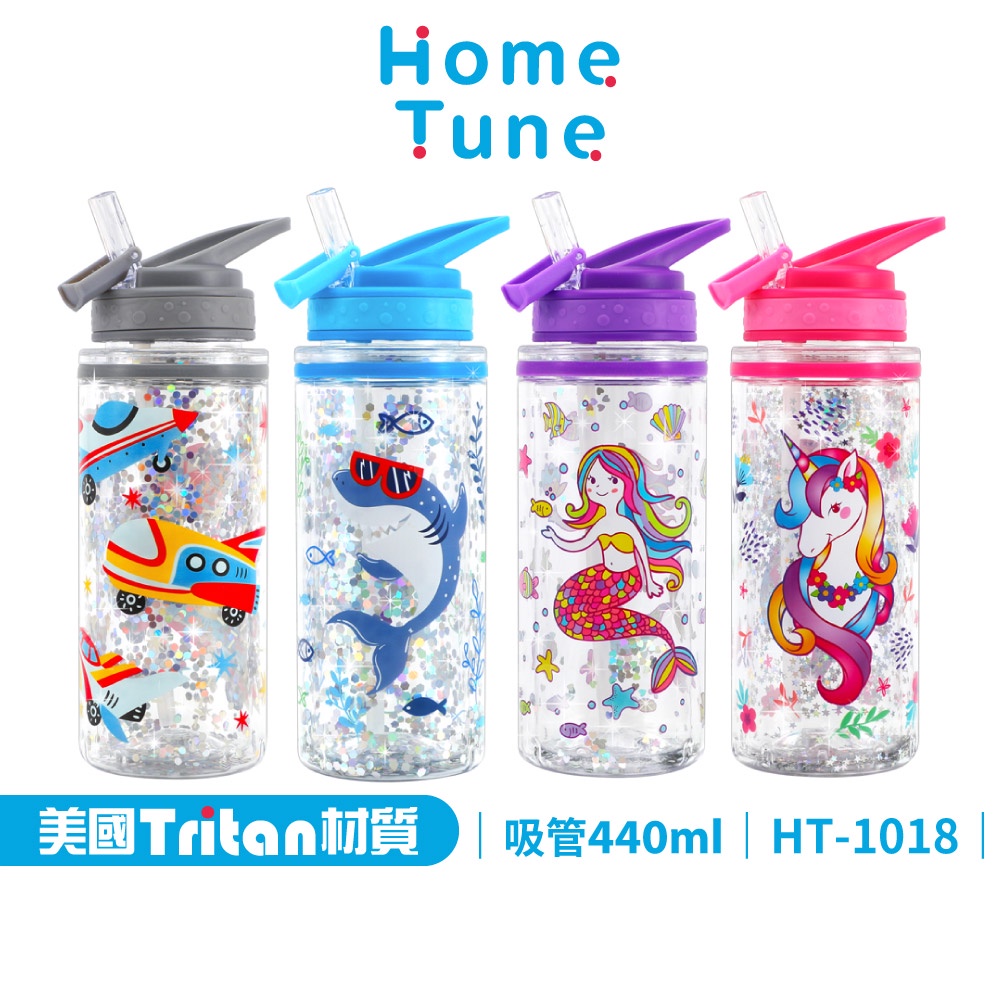 Home Tune家音兒童雙層翻蓋吸管式水壺440毫升|Tritan材質無雙酚A吸管式輕量防漏冷學生水壺 HT-1018飛機灰蓋|鯊魚藍蓋|美人魚紫蓋|獨角獸粉蓋Water Bottles & AccessoriesHome Tune家音