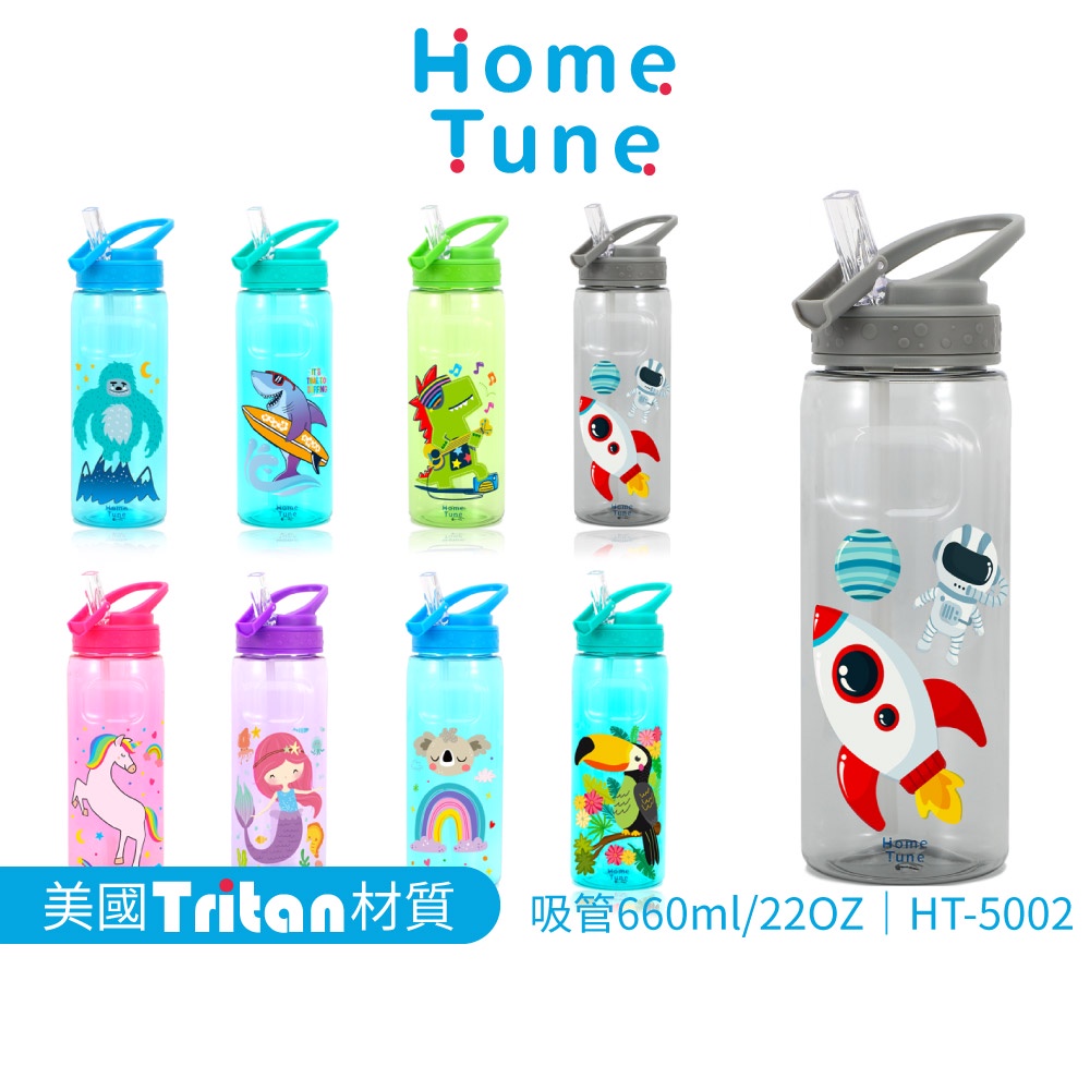 【特價出清】Home Tune翻蓋吸管式水壺22oz/660ml|Tritan材質兒童水壺吸管水壺HT-5002太空(灰)|獨角獸(粉)|無尾熊(藍)|大嘴鳥(藍綠)|美人魚(紫)|恐龍(綠)|鯊魚(藍綠)|猩猩(藍)Cups, Mugs & GlassesHome Tune家音