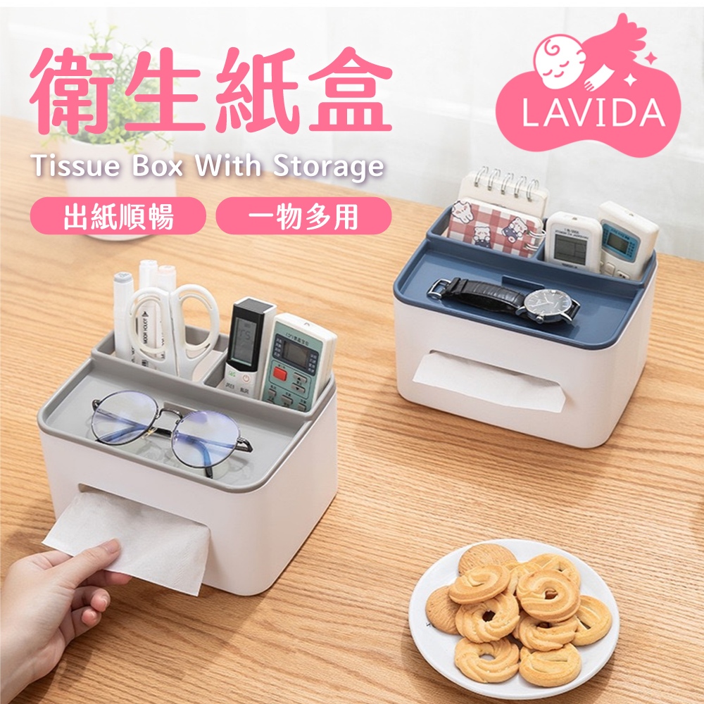 【LAVIDA嚴選】衛生紙盒 面紙盒 桌上收納盒 紙巾盒 多功能面紙盒 面紙盒收納 衛生紙盒收納 整理盒 桌上衛生紙盒灰色|藍色Tissue HoldersLAVIDA 育兒好好玩!