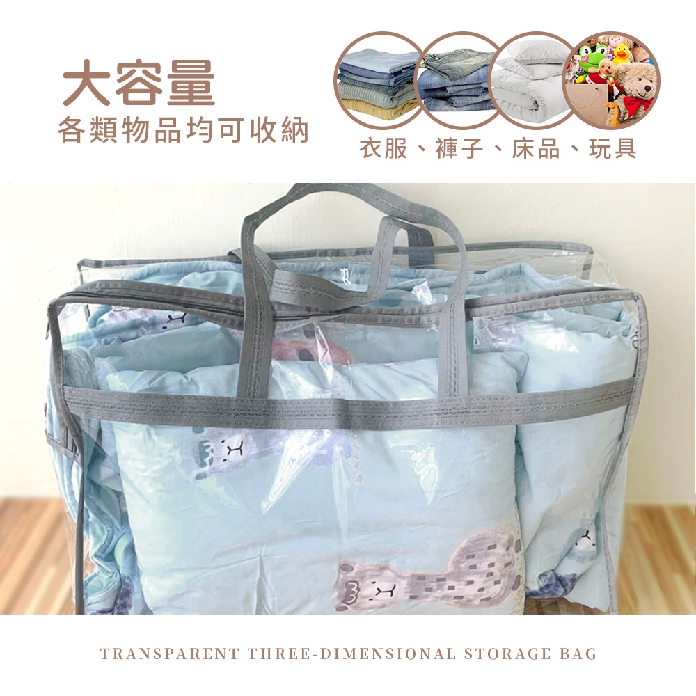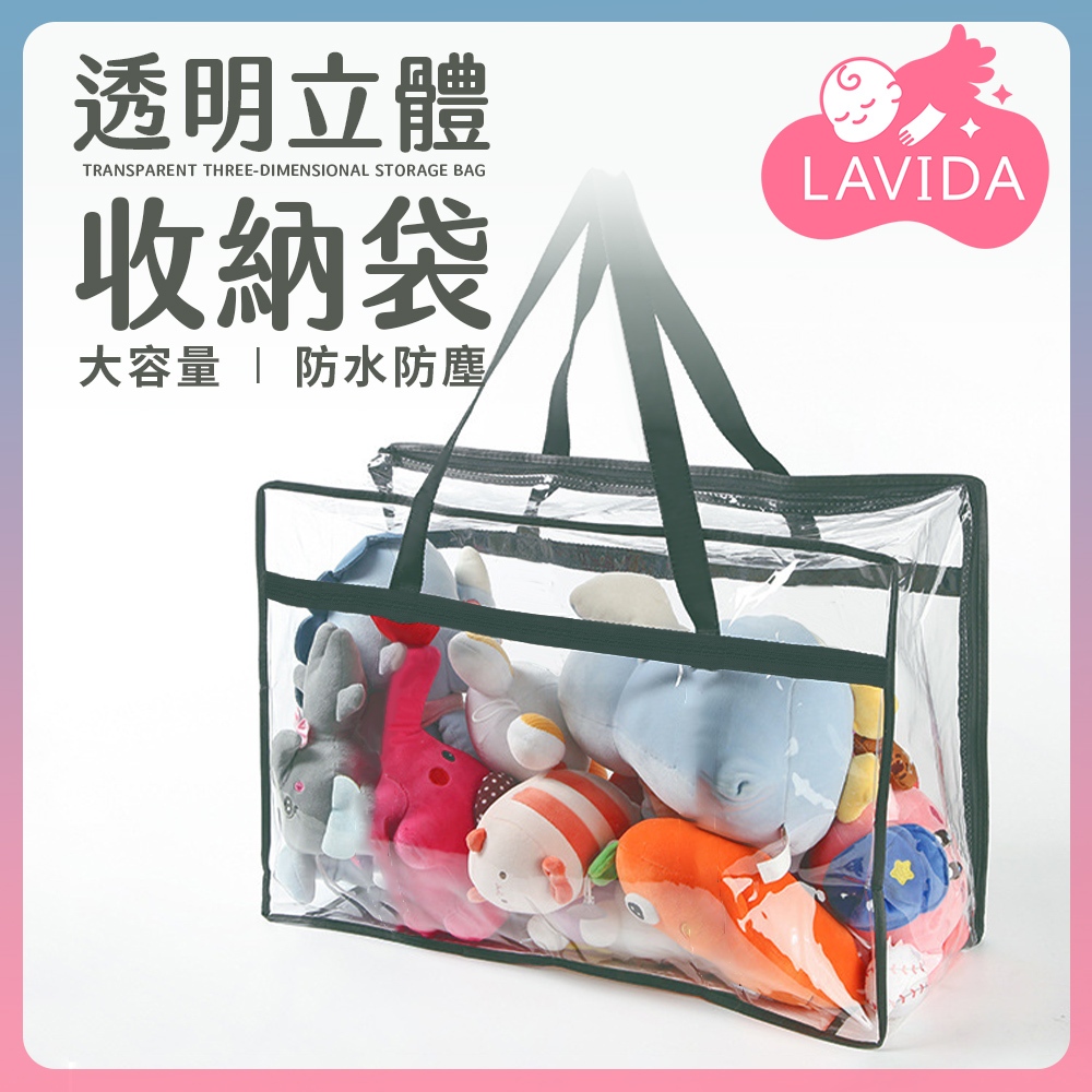 透明立體收納袋 大容量 防水防塵 多功能收納袋 透明收納袋 玩具收納袋 衣物收納 棉被收納袋 外出袋小號-墨綠|中號-墨綠|大號-墨綠|加大號-墨綠OthersLAVIDA 育兒好好玩!