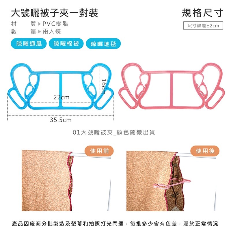 【LAVIDA嚴選】曬被子夾 日式晒被夾 專業被子夾 大號 兩入 晾曬棉被夾 防風 固定防滑 套夾 床單夾 晾被神器兩入-大號曬被夾_混色|XHangers & PegsLAVIDA 育兒好好玩!