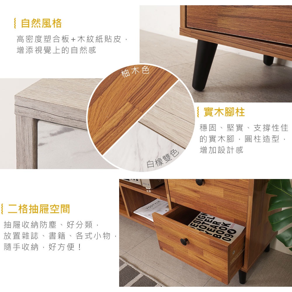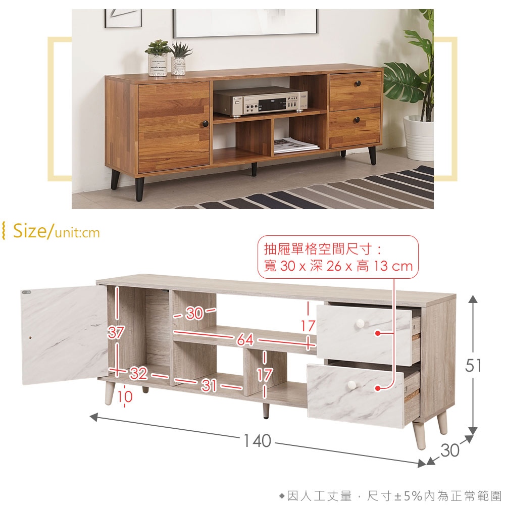 Homelike 喜家居140cm二抽一門電視櫃(2色可選)(2372) 客廳置物櫃 收納櫃 TV櫃柚木色-福利品「八成新」|白橡雙色|柚木色|白橡雙色-福利品「6成新」Cupboards & CabinetsHomelike