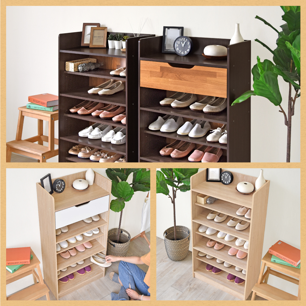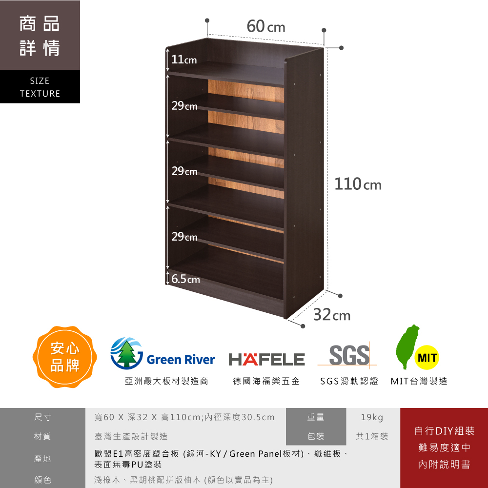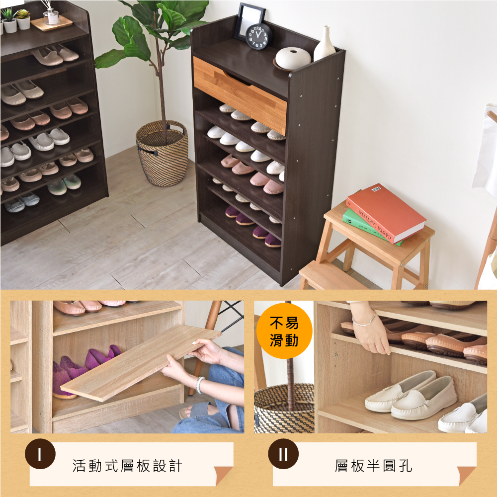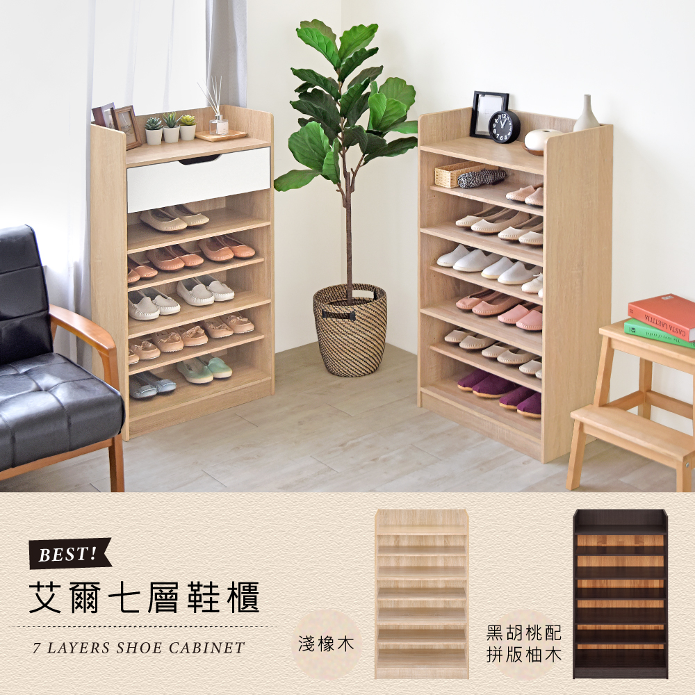HOPMA艾爾七層鞋櫃 台灣製造 玄關櫃 開放收納櫃 置物邊櫃 鞋架C-1101黑胡桃配拼版柚木|淺橡(漂流)木Shelves & RacksHOPMA 合馬家具