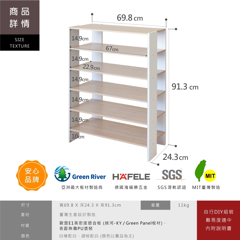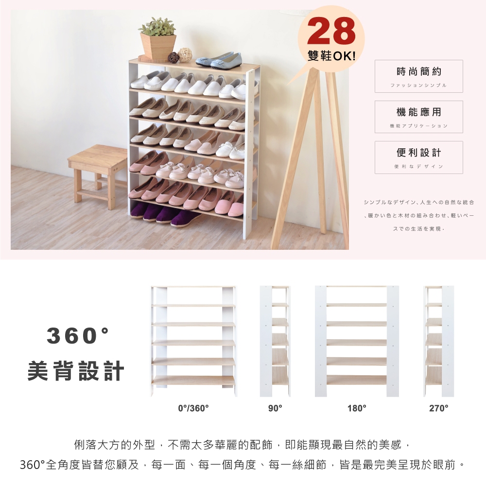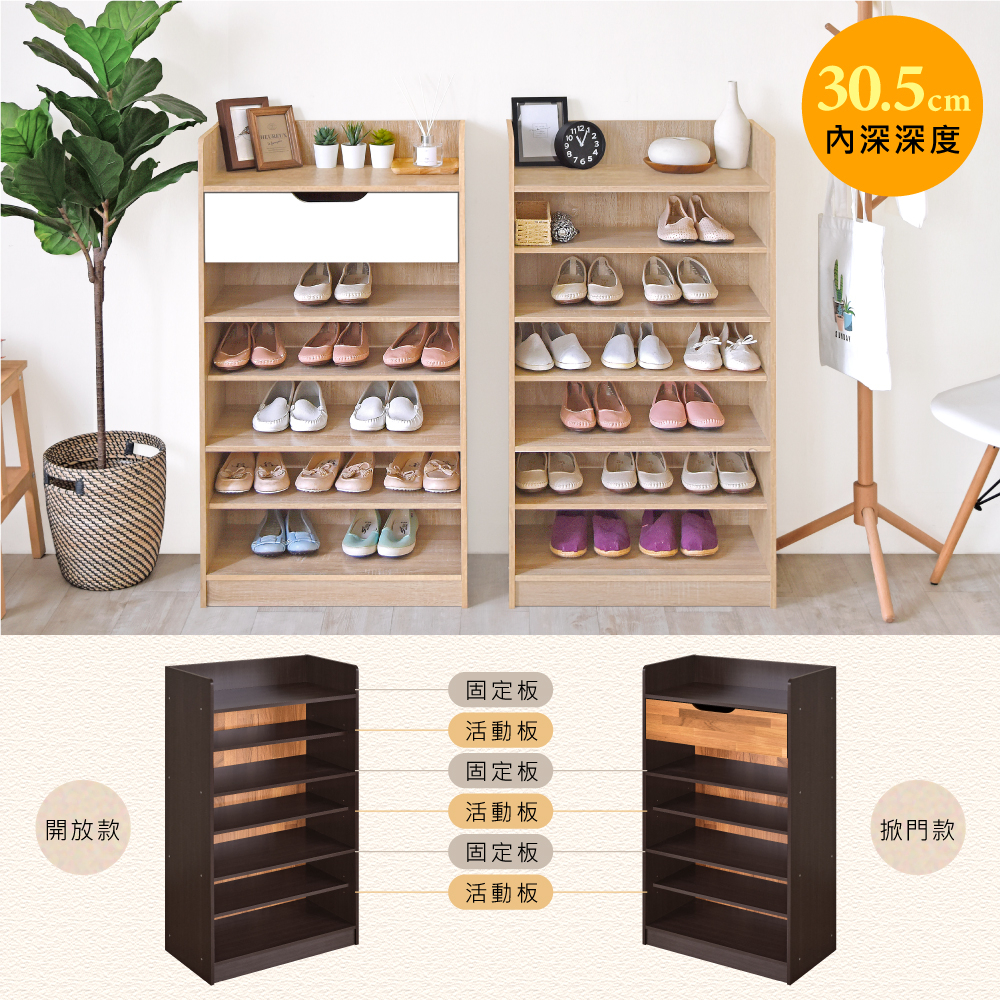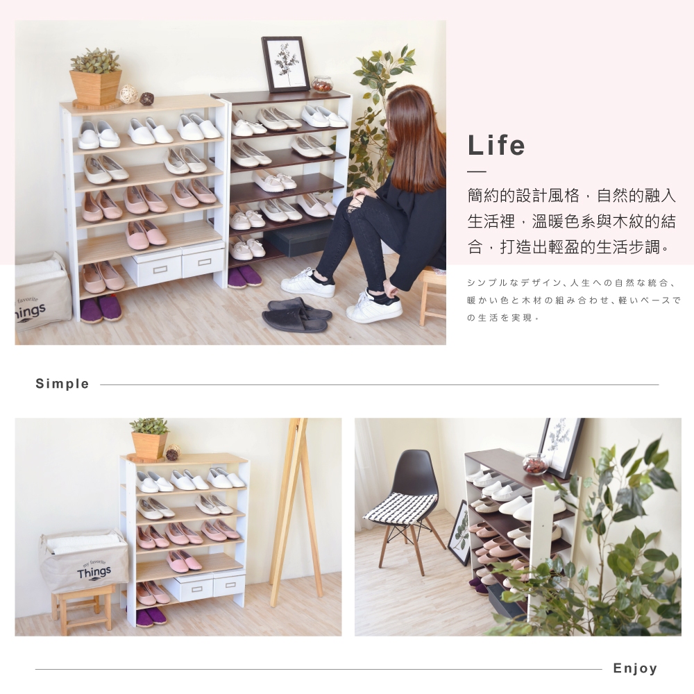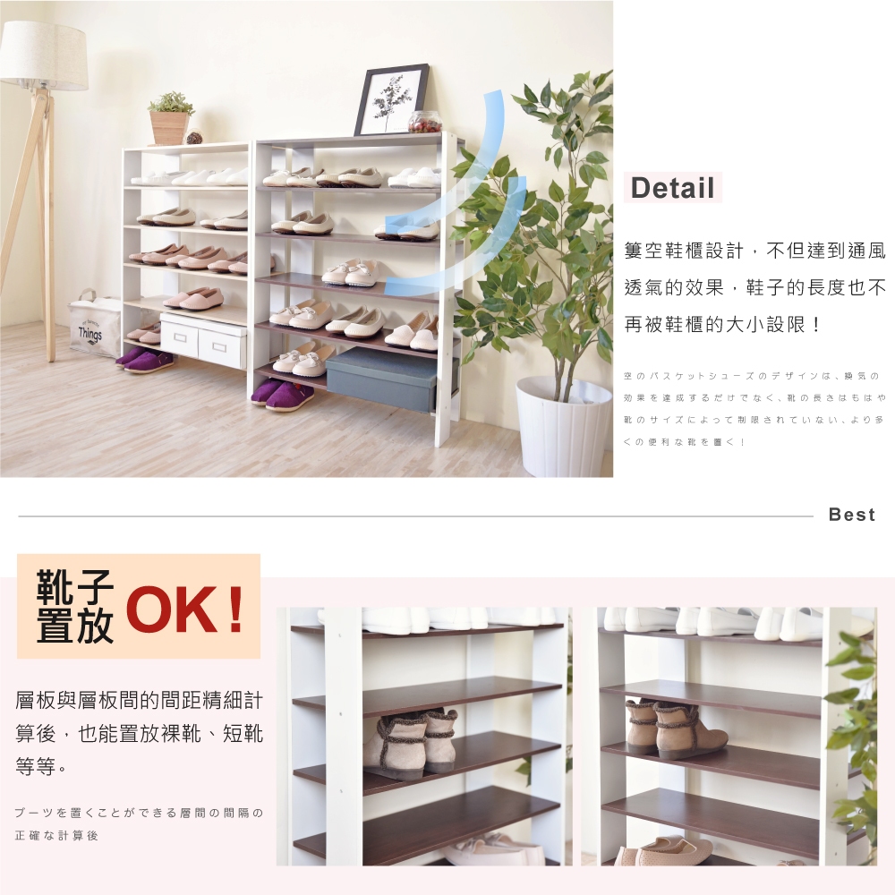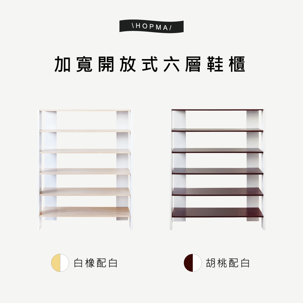 HOPMA加寬開放式六層鞋櫃 台灣製造 玄關收納層架 大容量置物鞋架C-S176胡桃配白|白橡配白Cupboards & CabinetsHOPMA 合馬家具