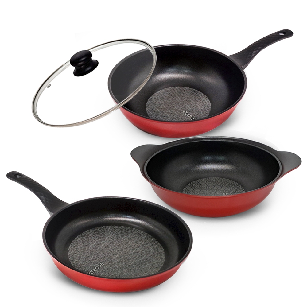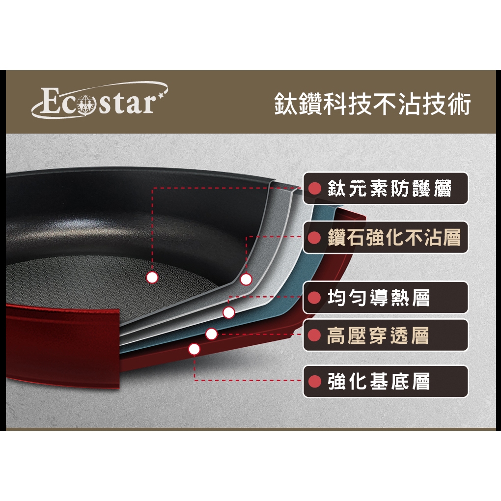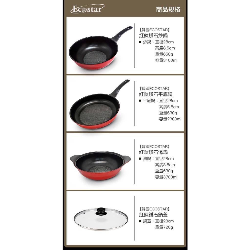 【韓國ECOSTAR】紅鈦鑽石不沾鍋具組/炒鍋/平底鍋/湯鍋/28cm/附鍋蓋炒+平+湯+蓋|炒+平+蓋|炒+湯+蓋PansGu.Kang 固鋼官方旗艦店