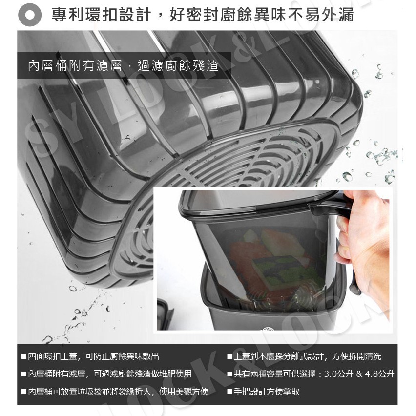 【樂扣樂扣】廚餘回收桶1.5L/3L/4.8L(超密封、防臭 、特惠中、夏季必備、防蚊蟲孳生)4.8L(5人以上、購買兩件只能選宅配)|3L(3至4人、購買兩件只能選宅配)|1.5L(1至2人 防臭 非密封)|3L奶茶米(3至4人、購買兩件只能選宅配OthersLocknLock樂扣樂扣旗艦店