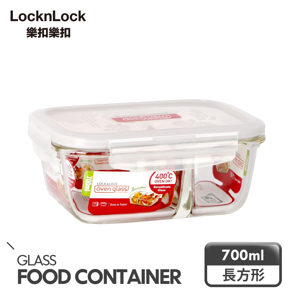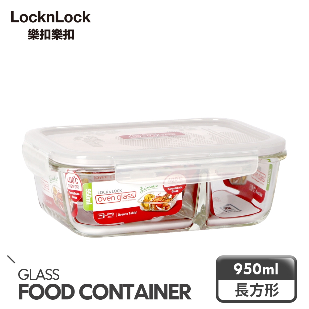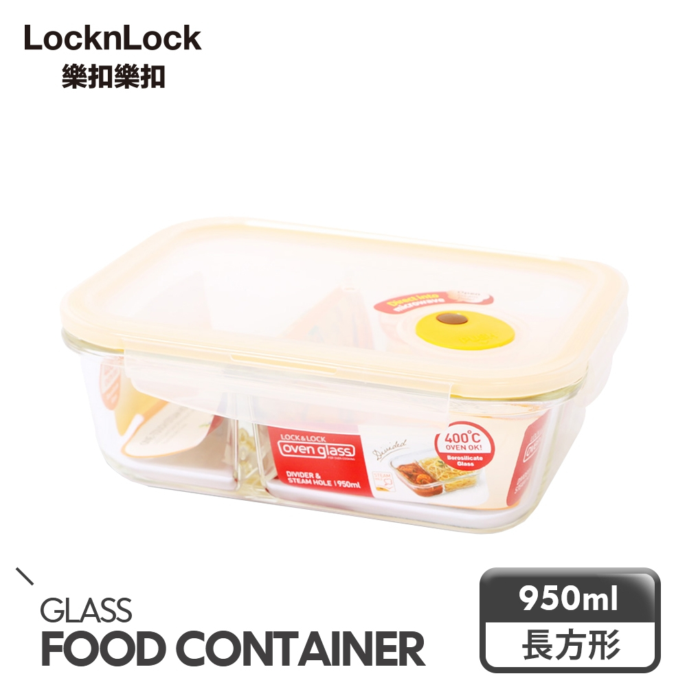 【樂扣樂扣】分隔耐熱玻璃保鮮盒(菜飯分開-便當好物)分隔長方形1.05L(紅白)|分隔長方形950ml(紅白)|分隔長方形320ml(紅白)|分隔長方形700ml(紅白)|分隔長方形950ml(氣孔蓋-黃)Food StorageLocknLock樂扣樂扣旗艦店