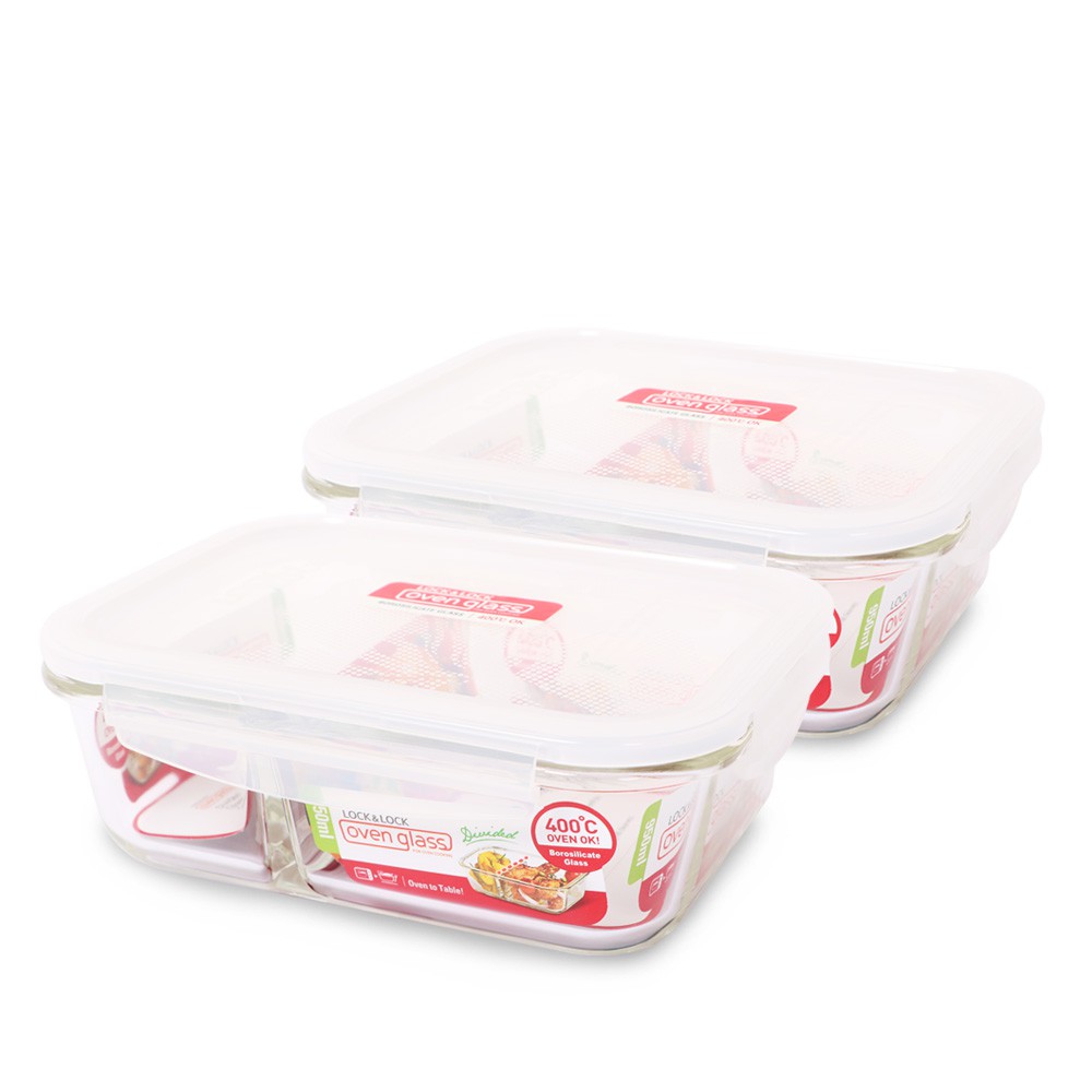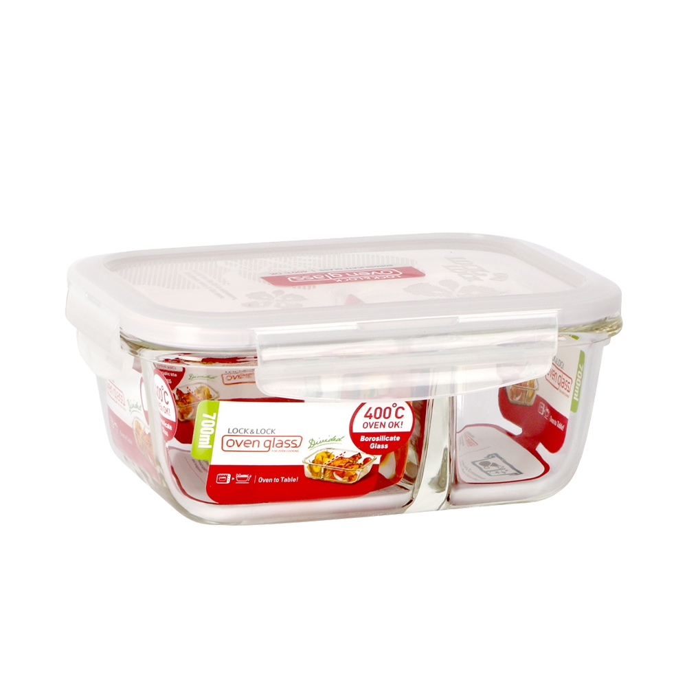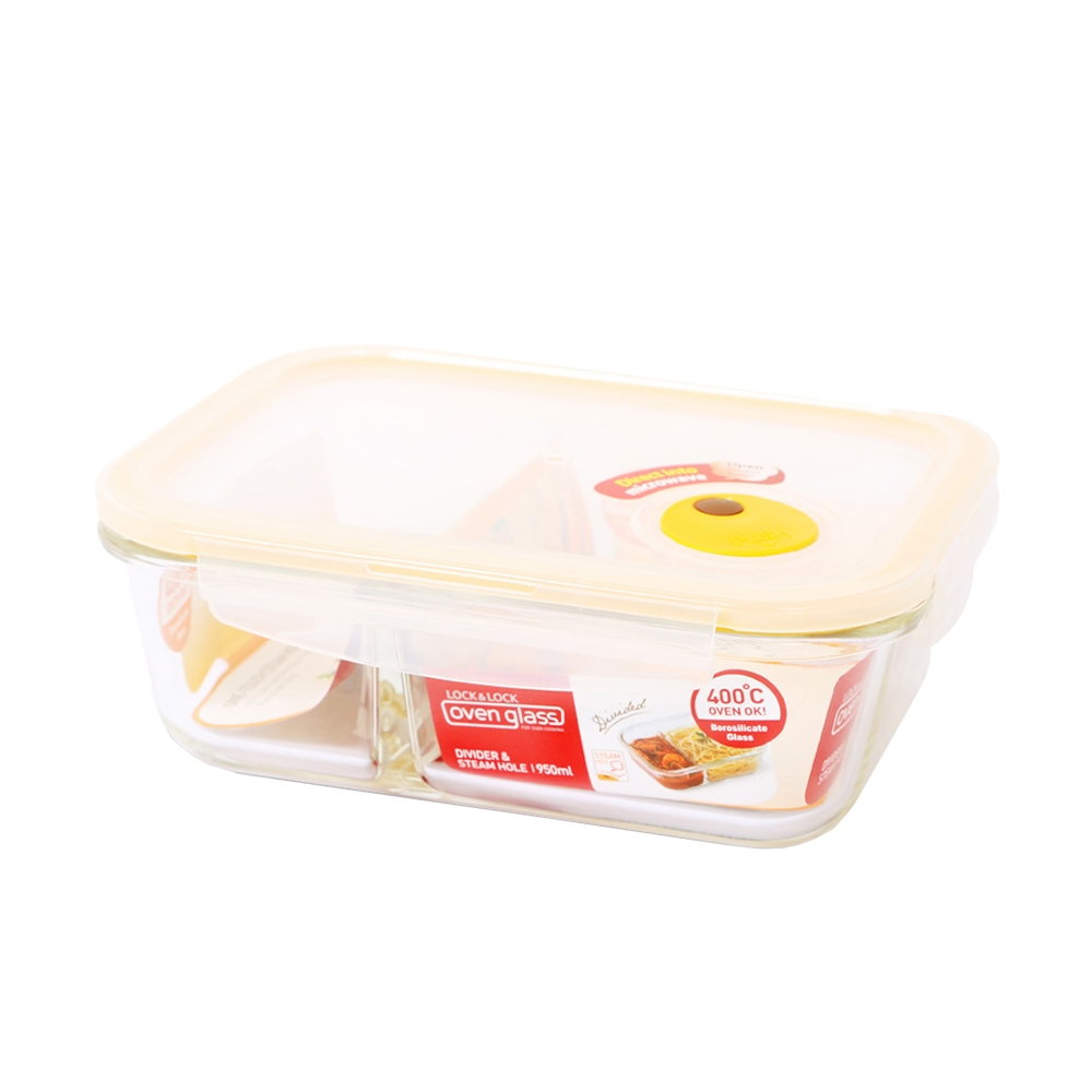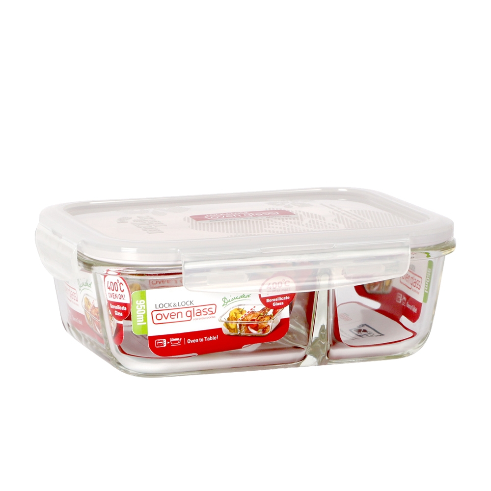 【樂扣樂扣】分隔耐熱玻璃保鮮盒(菜飯分開-便當好物)分隔長方形1.05L(紅白)|分隔長方形950ml(紅白)|分隔長方形320ml(紅白)|分隔長方形700ml(紅白)|分隔長方形950ml(氣孔蓋-黃)Food StorageLocknLock樂扣樂扣旗艦店