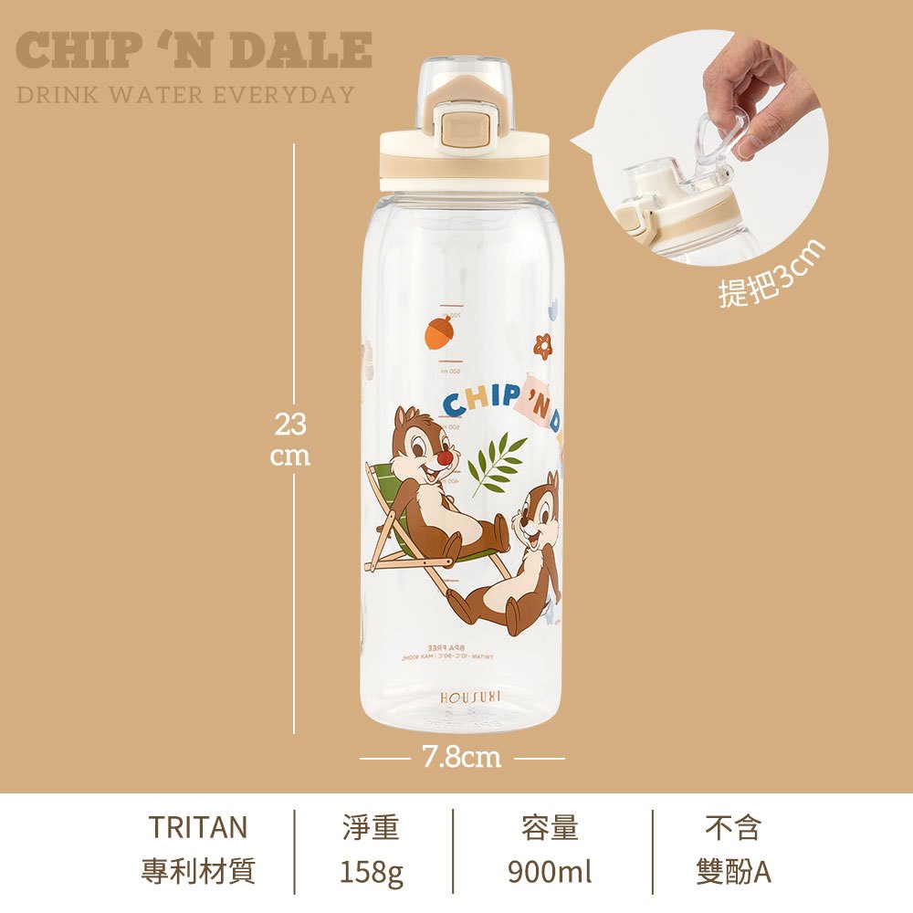 【HOUSUXI官方旗艦】迪士尼奇奇蒂蒂系列-Tritan彈蓋水瓶900ml奇奇蒂蒂-900mlCups, Mugs & GlassesHOUSUXI 舒希官方旗艦店