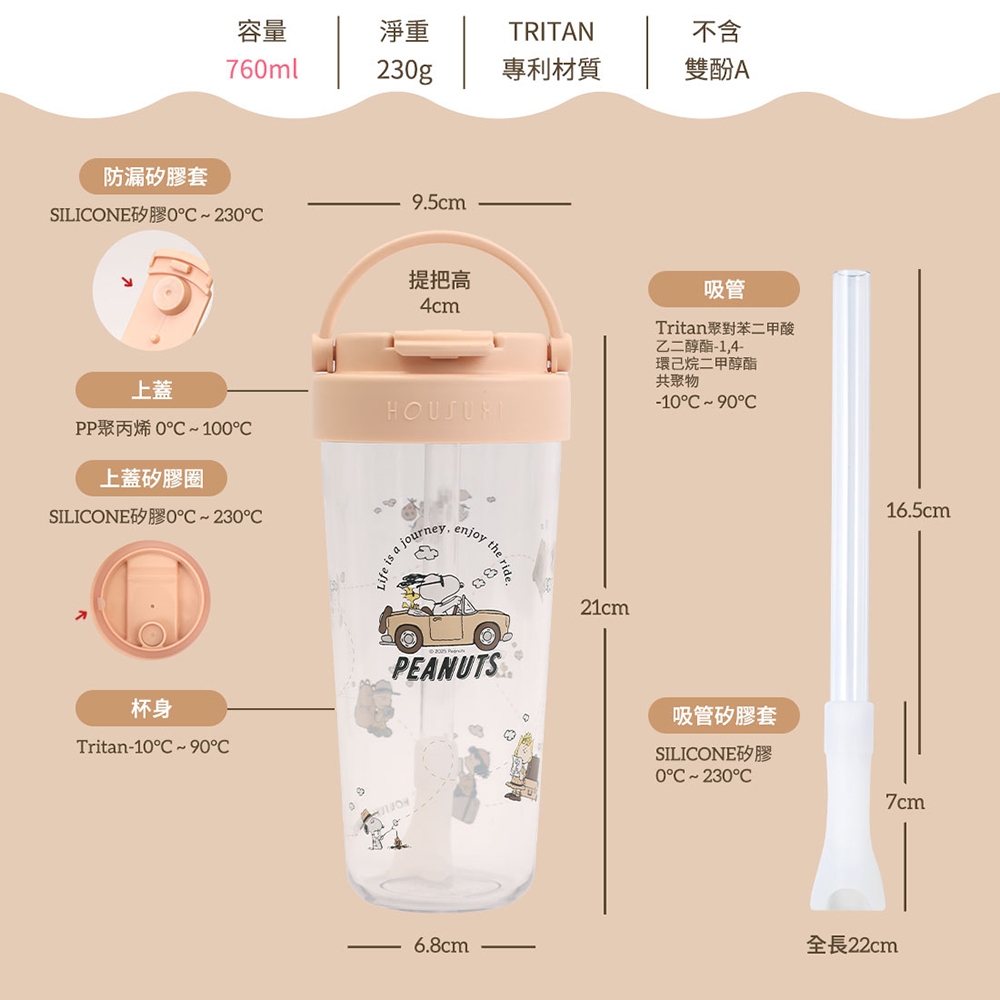【HOUSUXI官方旗艦】史努比-Tritan輕透舒吸杯(附彈跳吸管)760mlTritan輕透舒吸杯-史努比Cups, Mugs & GlassesHOUSUXI 舒希官方旗艦店