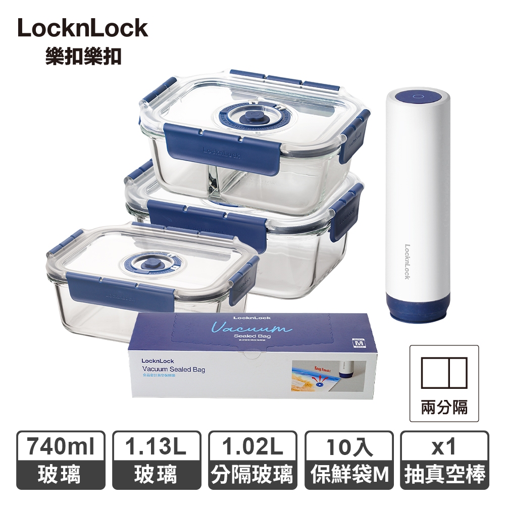 【樂扣樂扣】頂級透明玻璃抽真空保鮮盒/袋多入組(一鍵抽真空/延緩氧化/日期紀錄)保鮮入門3+10件組(超取限購一組)|保鮮達人5+10件組(超取限購一組)|生食保鮮4+10件組(超取限購一組)|真空保鮮袋30+1組Food StorageLocknLock樂扣樂扣旗艦店