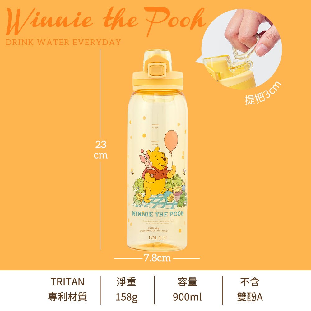 【HOUSUXI官方旗艦】迪士尼小熊維尼系列-Tritan彈蓋水瓶900ml小熊維尼-900mlCups, Mugs & GlassesHOUSUXI 舒希官方旗艦店