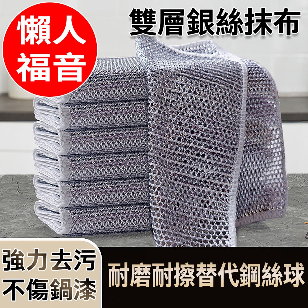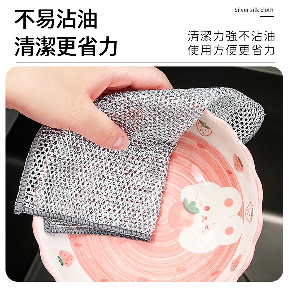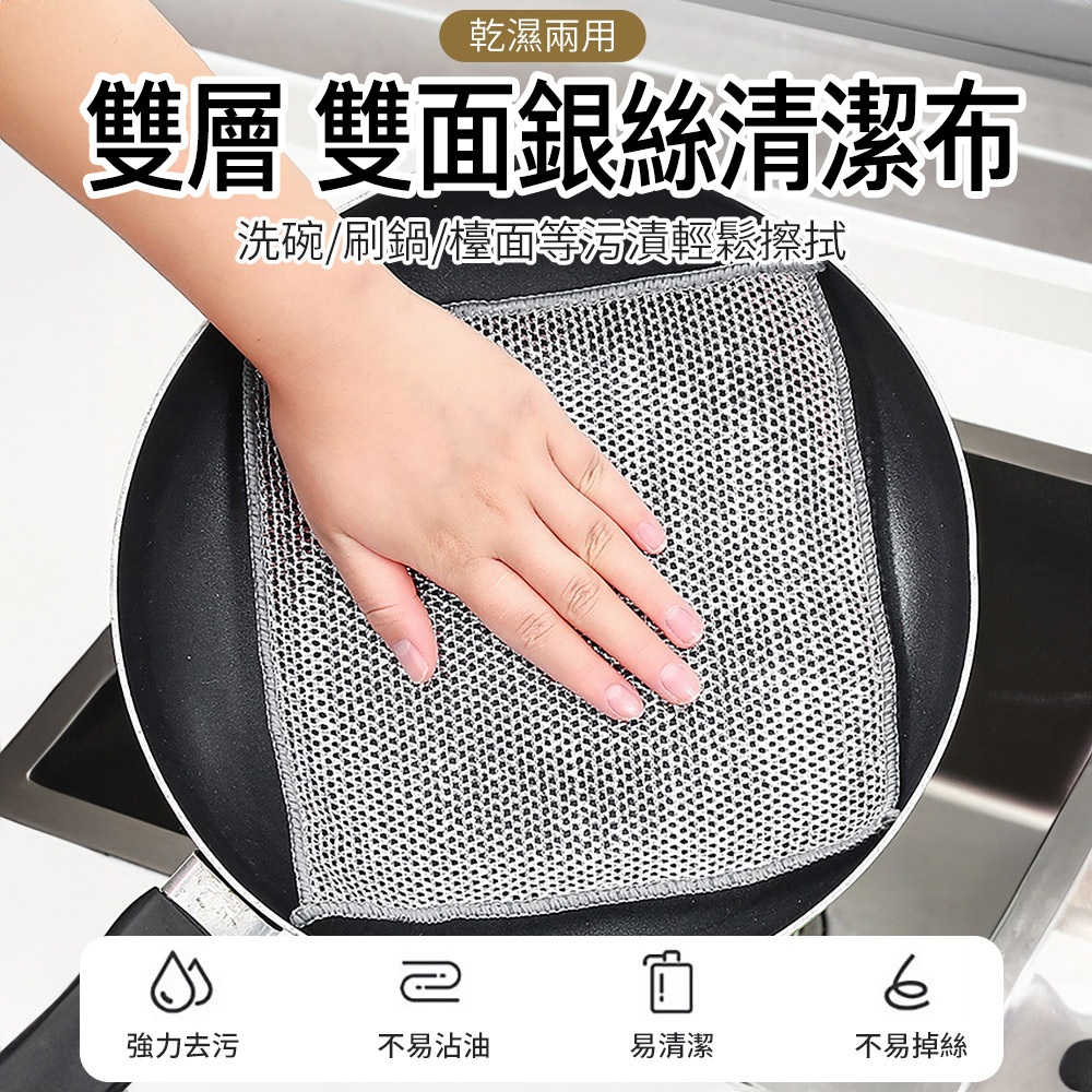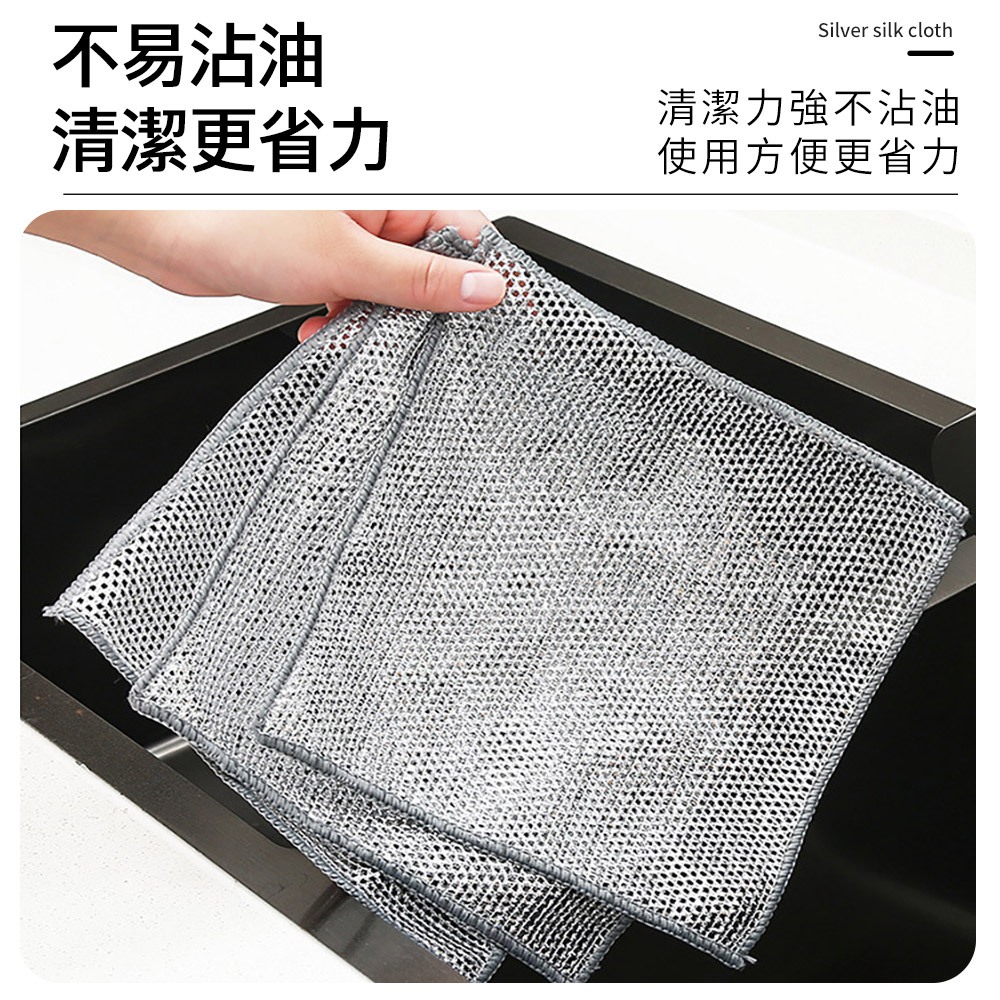 ECHAIN TECH 雙層銀絲抹布 鋼絲洗碗布 銀絲抹布 乾濕兩用去污金屬絲抹布 廚房抹布 鋼絲球 鋼絲抹布雙層單條Cleaning ClothsLOG 樂格地墊