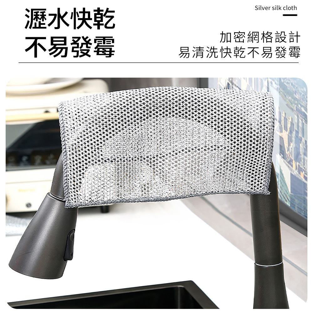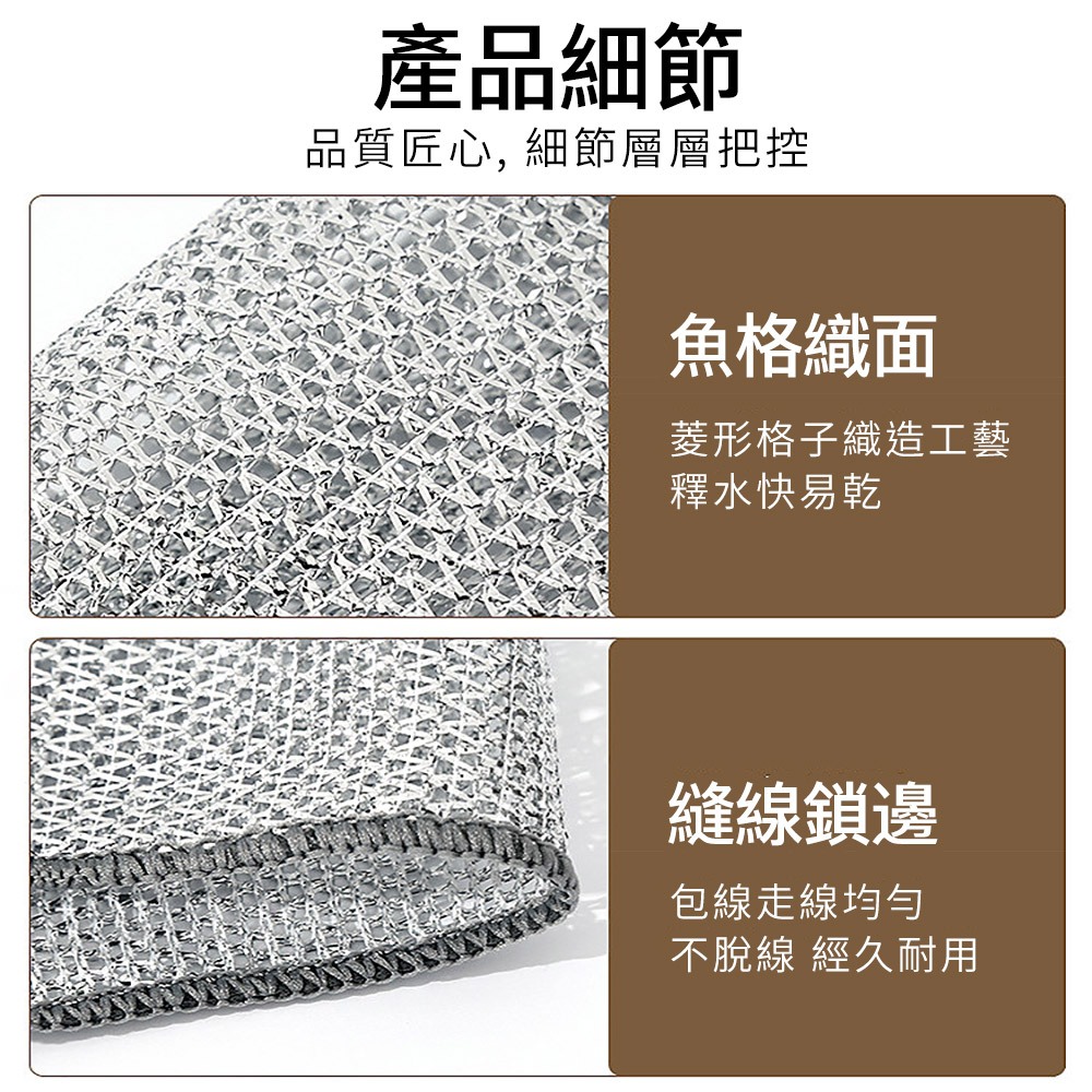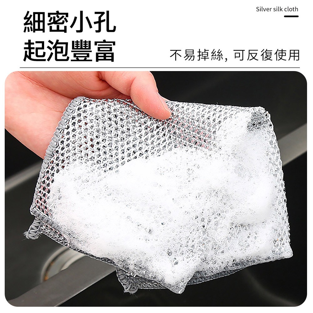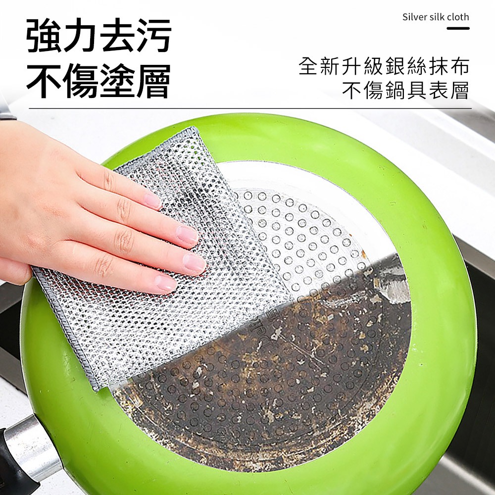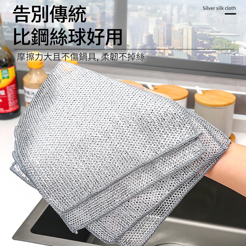 ECHAIN TECH 雙層銀絲抹布 鋼絲洗碗布 銀絲抹布 乾濕兩用去污金屬絲抹布 廚房抹布 鋼絲球 鋼絲抹布雙層單條Cleaning ClothsLOG 樂格地墊