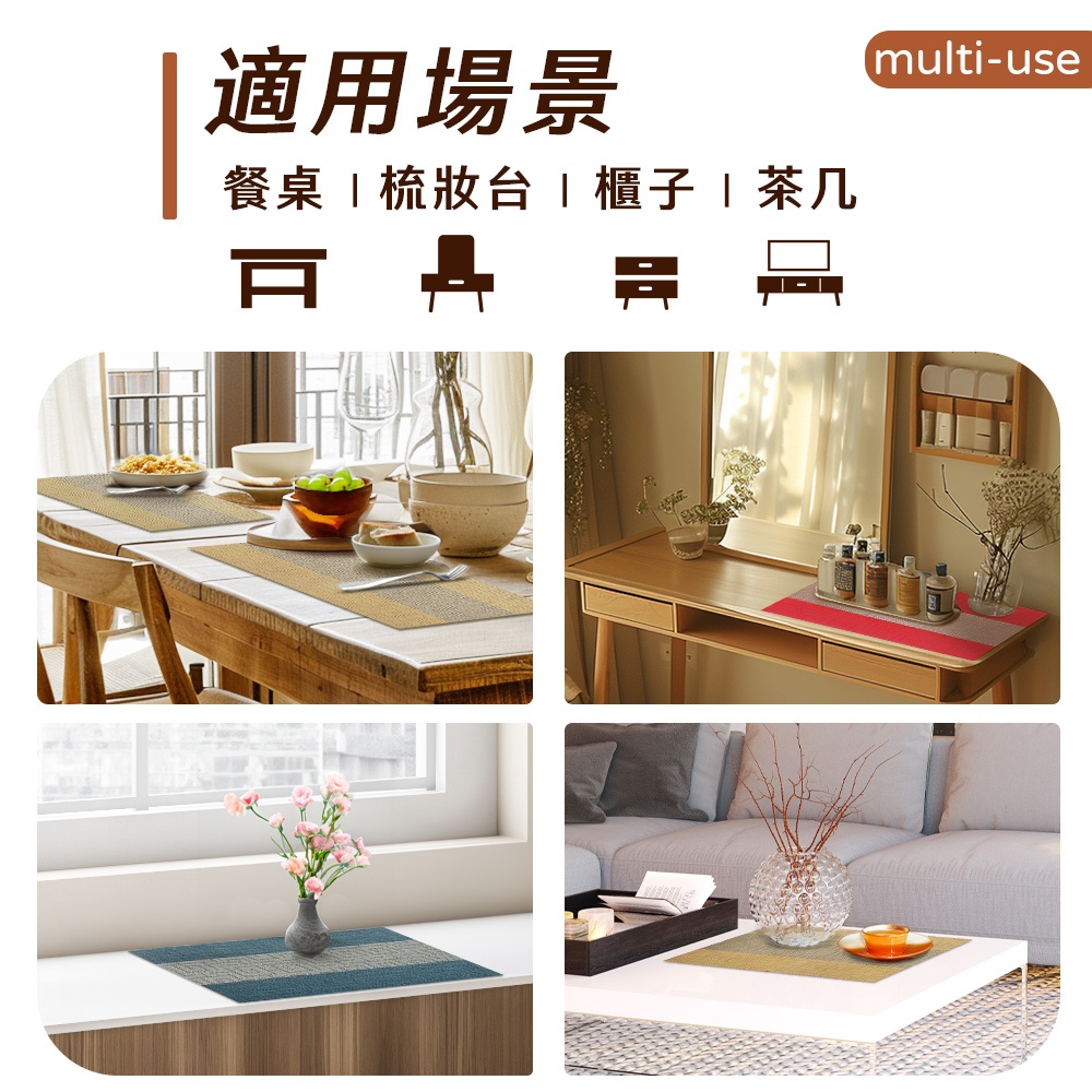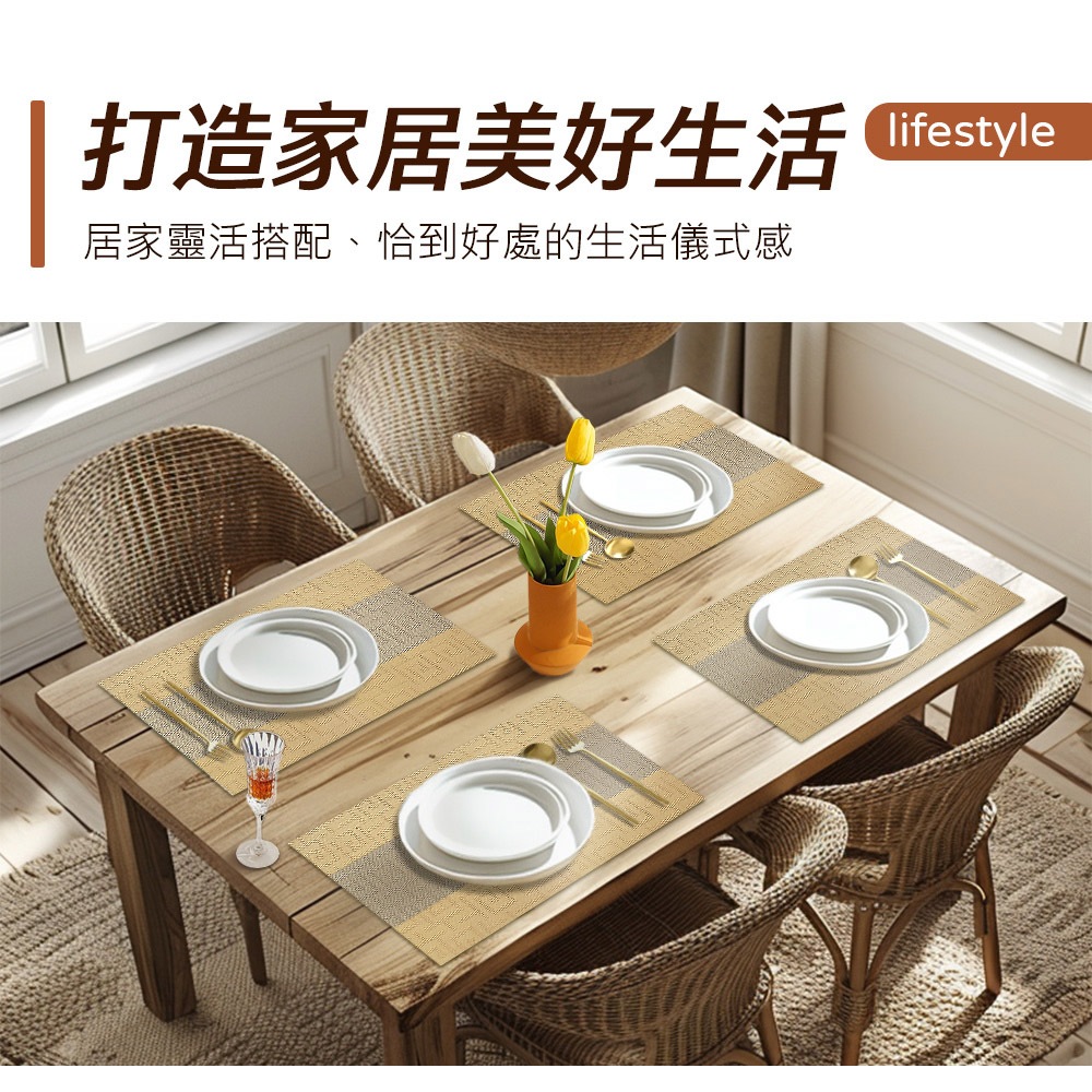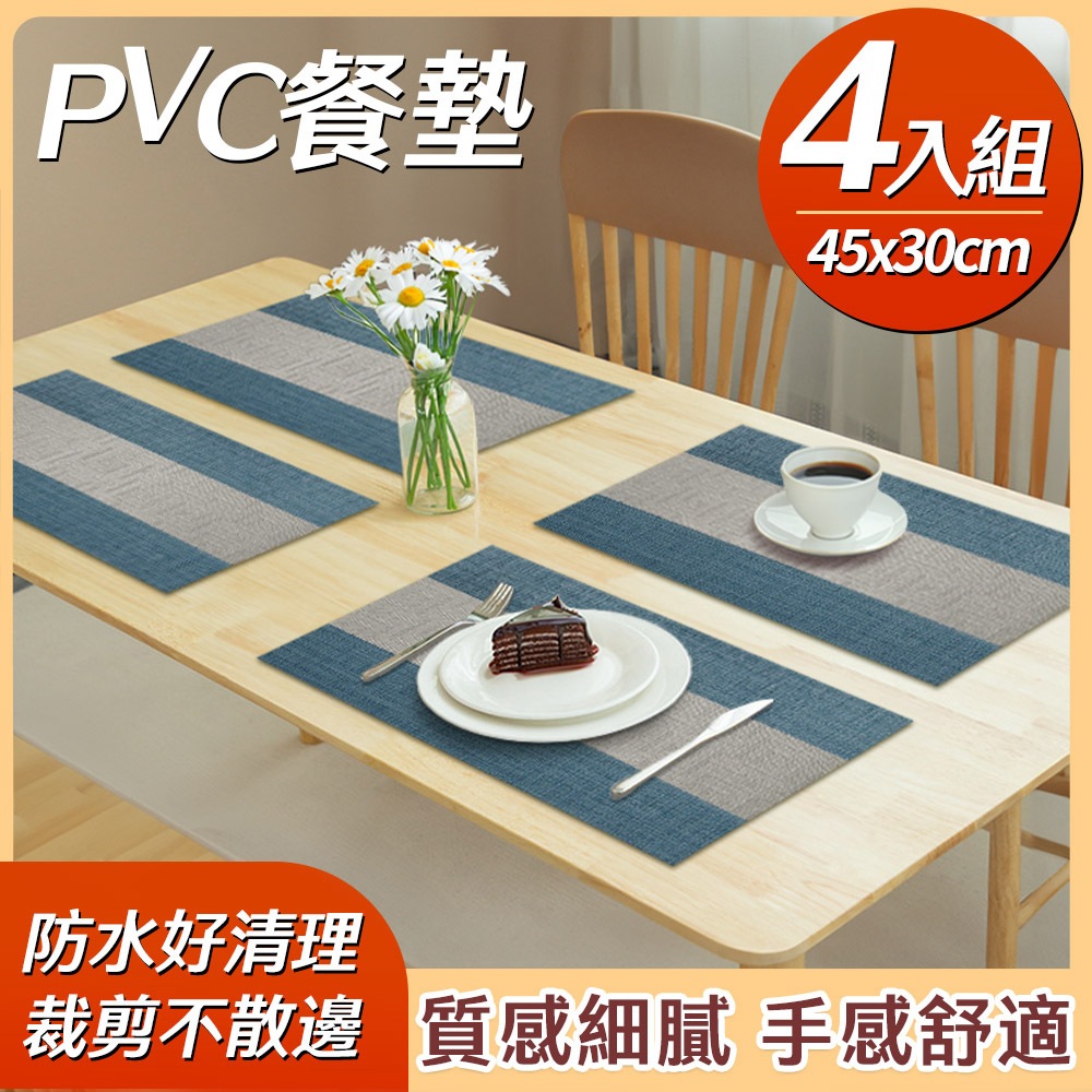 ECHAIN TECH 餐墊 PVC餐墊 PVC隔熱墊 簡約棉麻 防水墊 防燙墊 隔餐墊 茶台墊-4入組經典藍經典-紅|經典-姜黃|經典-藍Placemats & CoastersLOG 樂格地墊