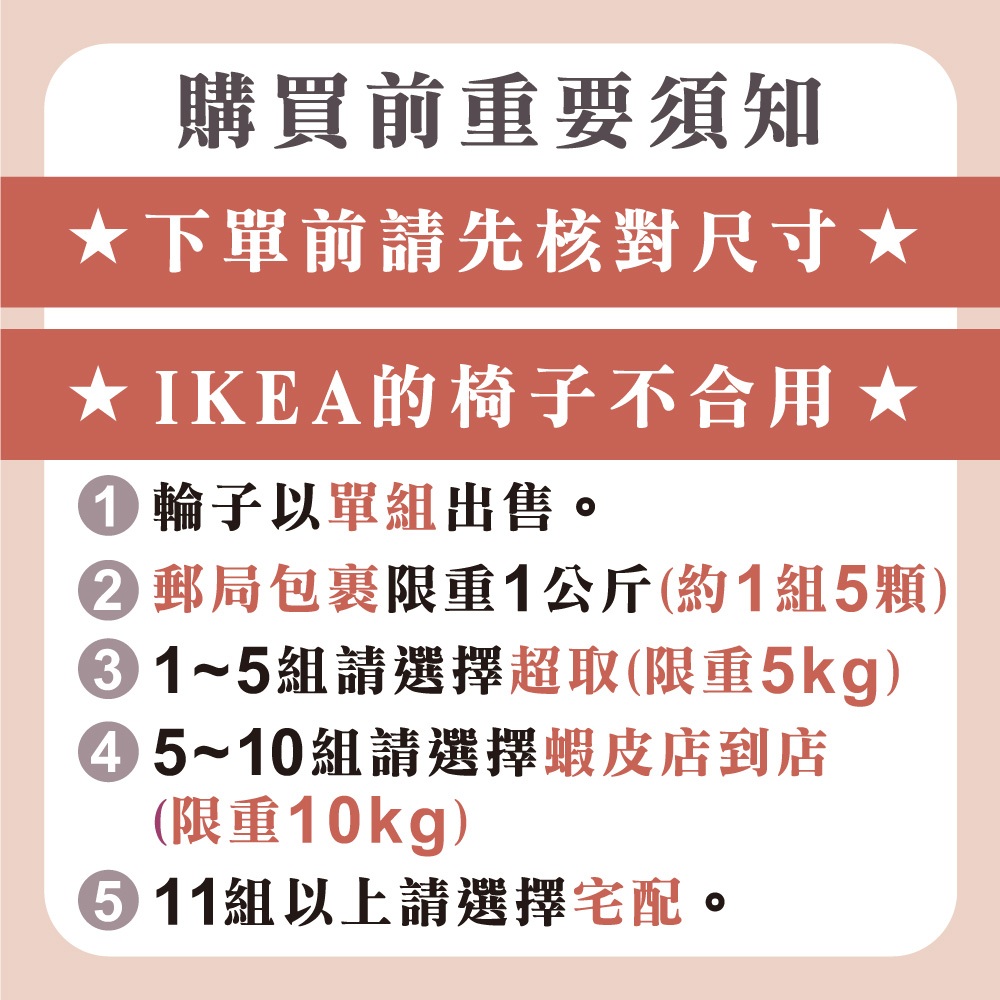LOGIS電腦椅輪子!! 5顆 木地板專用 萬向輪 防刮滑輪 辦公椅輪 PU輪 兒童椅用輪 五爪輪 輪子 靜音輪 椅子1.固定輪|2.PU固定輪|3.PP輪|4.PP煞車輪|5.PU輪|6.PU壓力輪|7.灰PU剎車輪|8.加大PU輪|9.PU賽車輪|10.POWER耐重型|11.黑色PU剎車|12.黑色PU剎車(加大)|14.粉色PU壓力輪|16.粉色PU剎車輪|15.藍色PU壓力輪|17.藍色PU剎車輪|12.透明醫療用靜音輪|13.透明萬向輪|18.銀蓋加大PU輪|19.黑色仿飛機輪紋賽車輪|21.白PU剎車輪|20.白色仿飛機輪紋賽車輪OthersLOGIS 網路家具