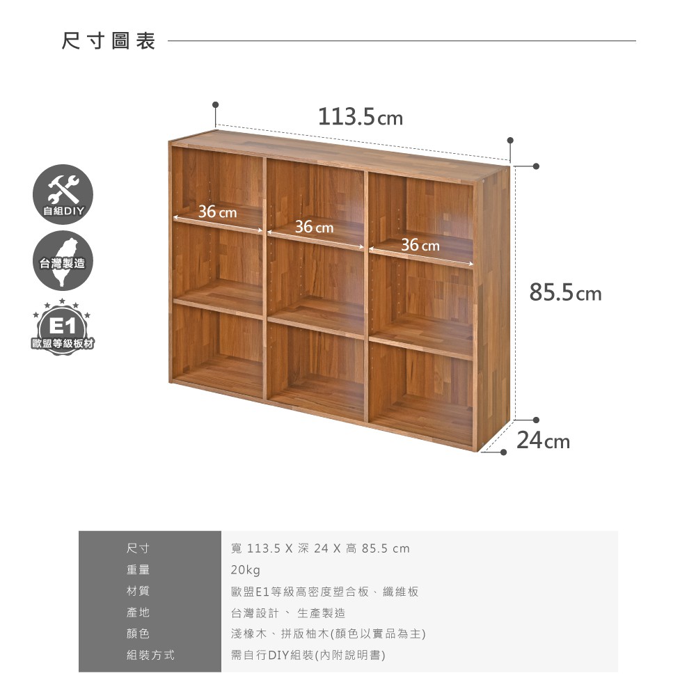 HOPMA樂活九格組合式書櫃 台灣製造 收納櫃 置物櫃 多格層櫃 儲藏櫃 玄關櫃 門櫃 書架G-850淺橡(漂流)木|拼版柚木Shelves & RacksHOPMA 合馬家具