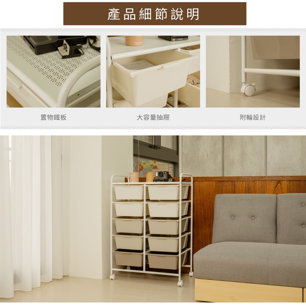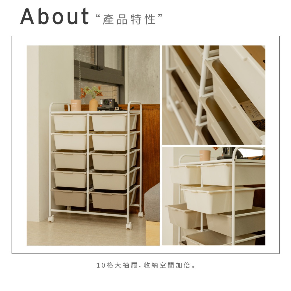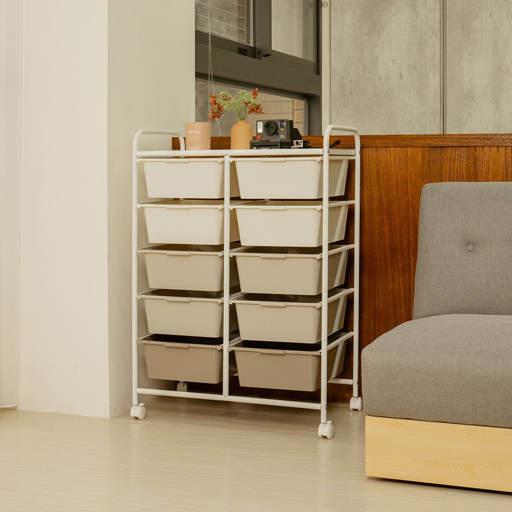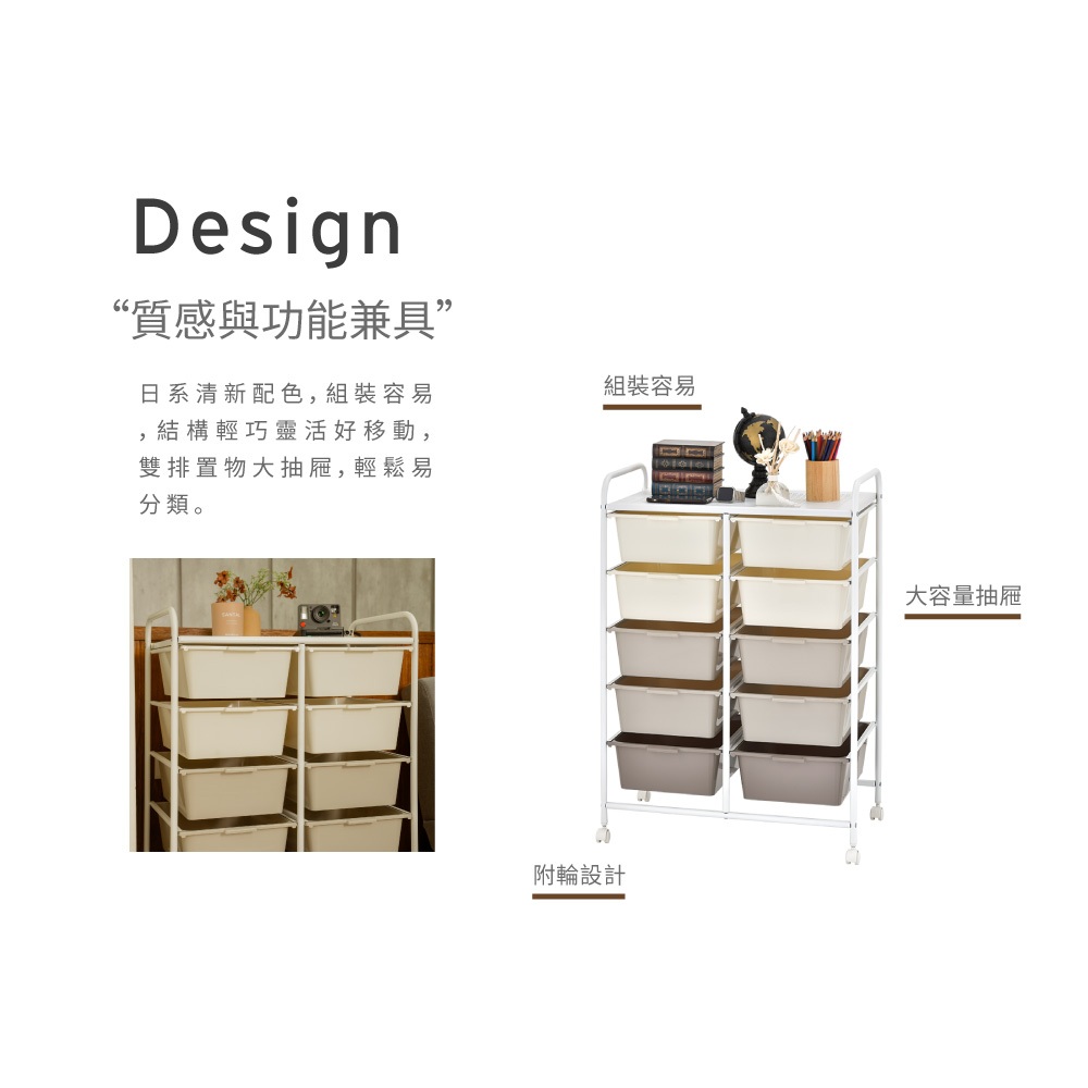 【ikloo】奶茶色雙排五層收納抽屜車(無珠珠把手)奶茶色Storage Boxes, Bags & Basketsikloo 宜酷屋