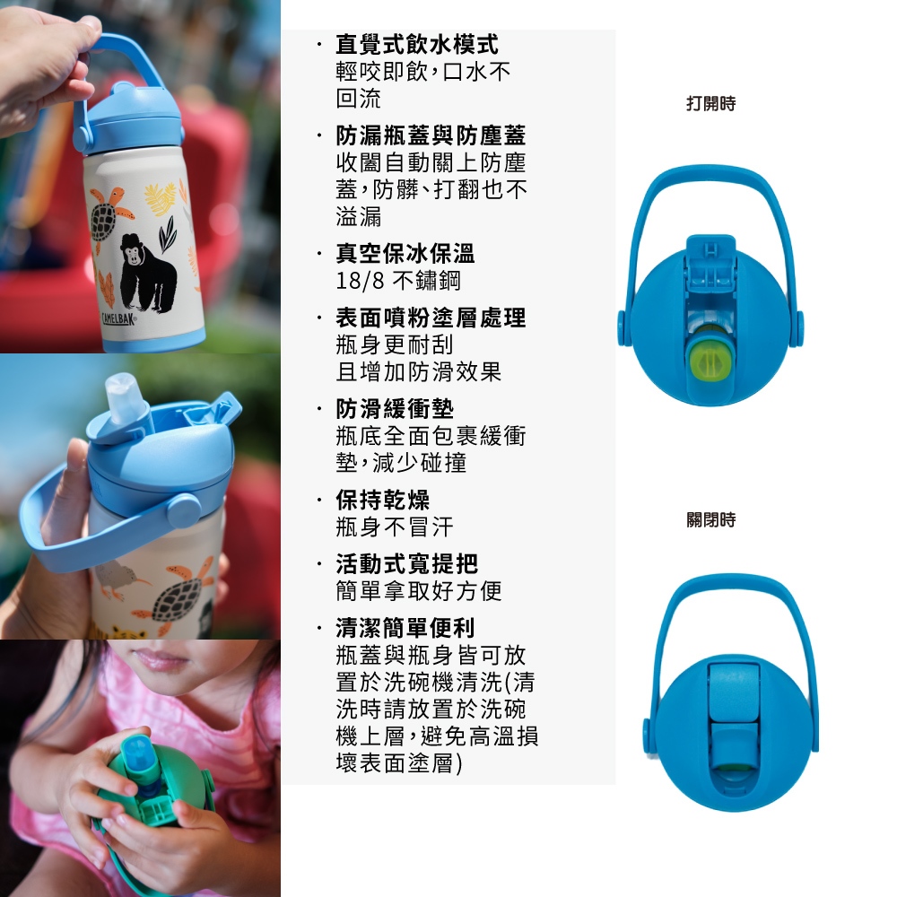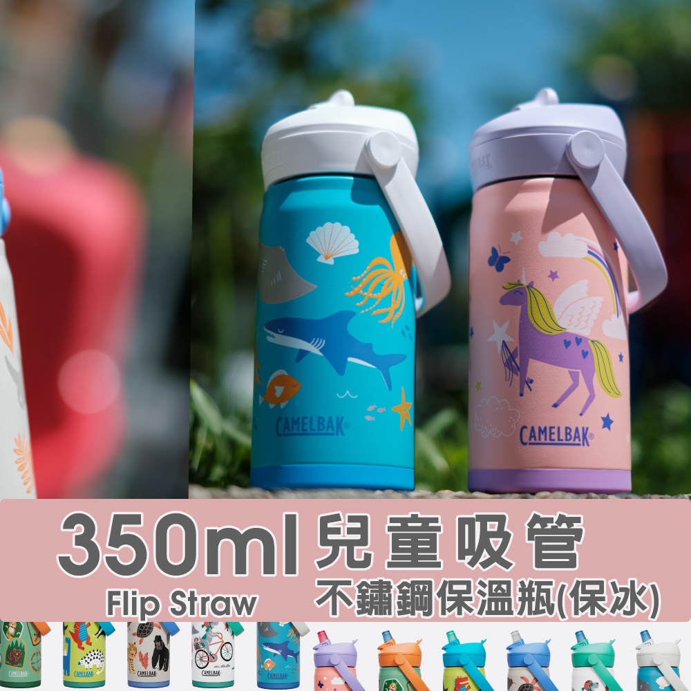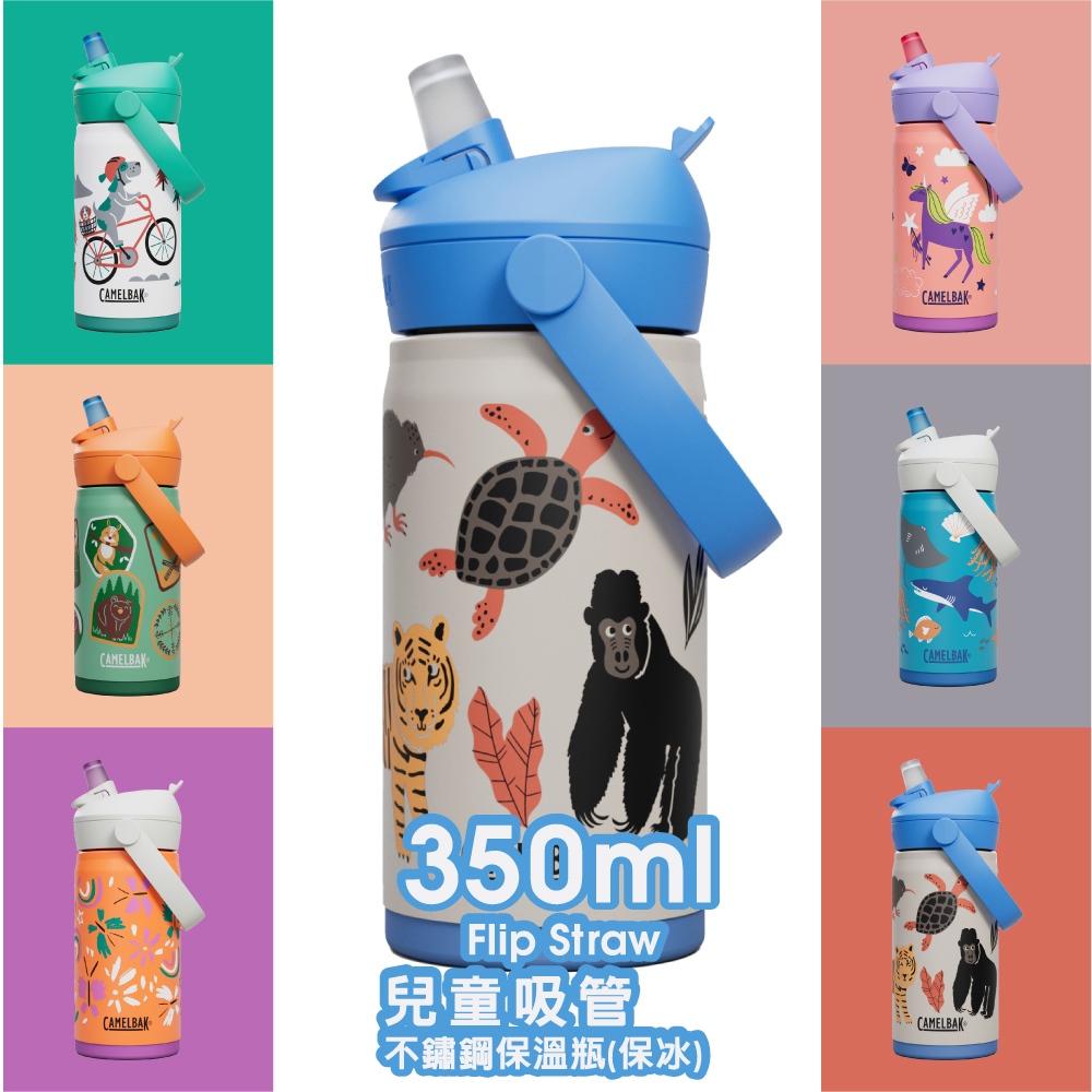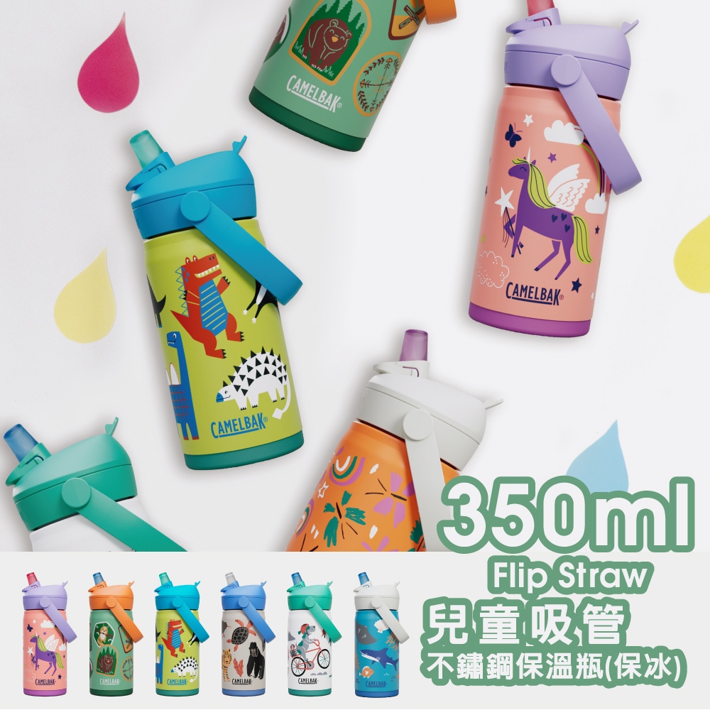 CAMELBAK 350ml Flip Straw兒童吸管不鏽鋼保溫瓶(保冰) [米圖]單車狗狗|恐龍聚會|海洋世界|動物樂園|魔幻獨角獸|蝶舞彩虹Water Bottles & Accessoriesimitu 米圖