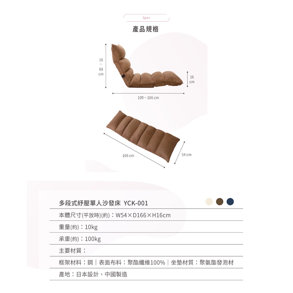 IRIS OHYAMA 多段式單人沙發躺椅 YCK-001 (沙發床/和室沙發/沙發椅/懶骨頭)深棕色|海軍藍|象牙白Benches, Chairs & StoolsIRIS OHYAMA 台灣愛麗思歐雅瑪