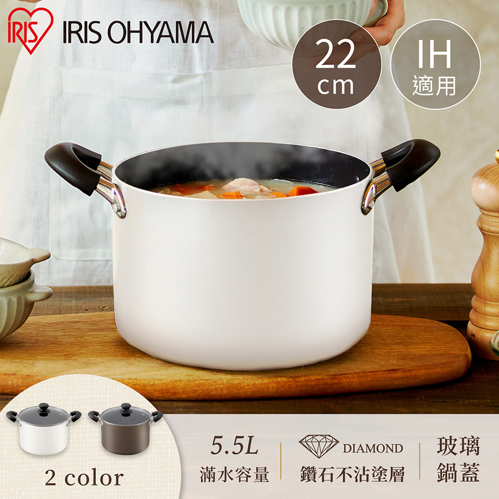 IRIS OHYAMA 鑽石不沾塗層深型湯鍋22cm DIS-P22D (不沾鍋)DIS-P22D 白色|DIS-P22D 咖啡色PotsIRIS OHYAMA 台灣愛麗思歐雅瑪