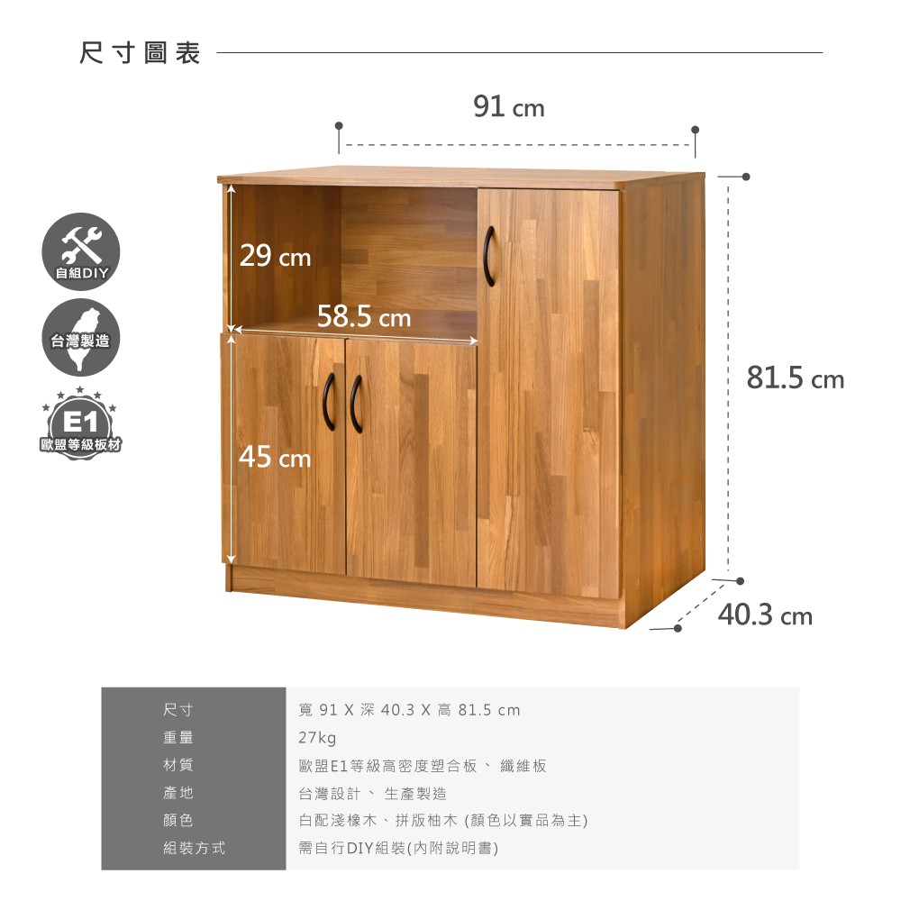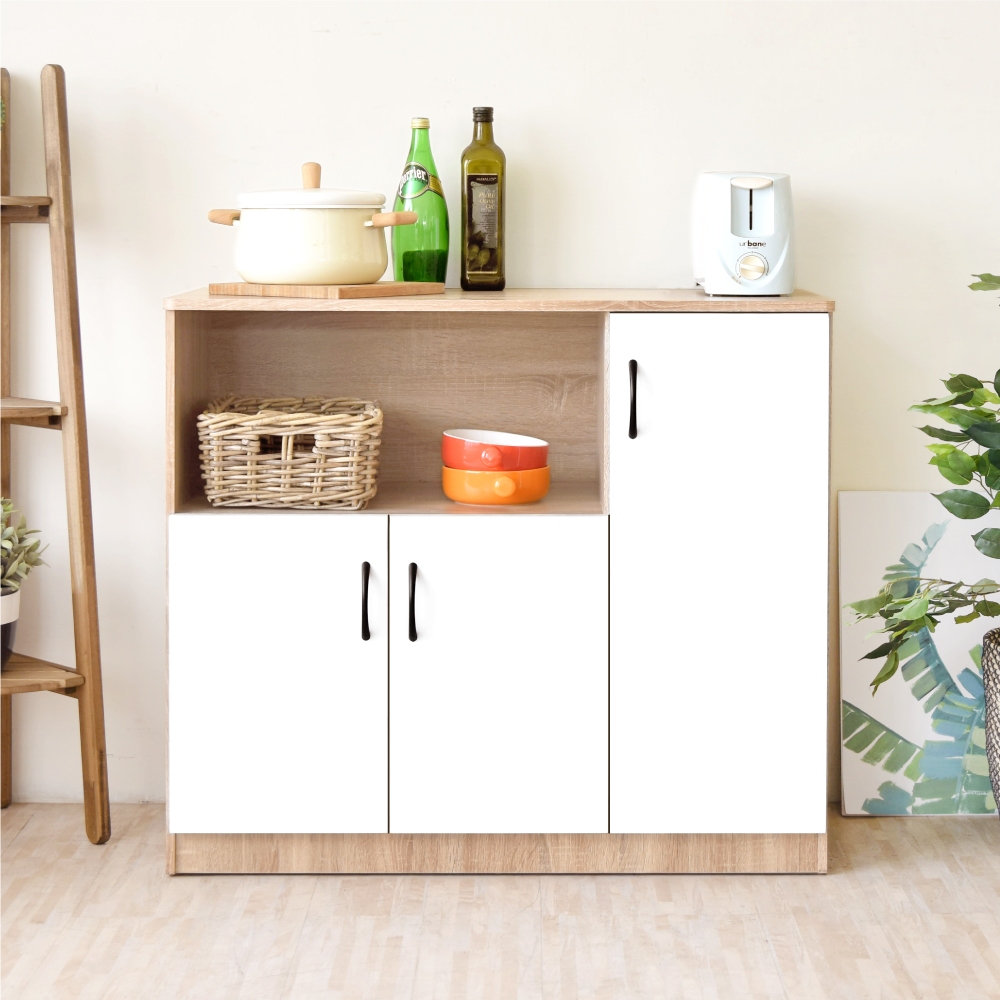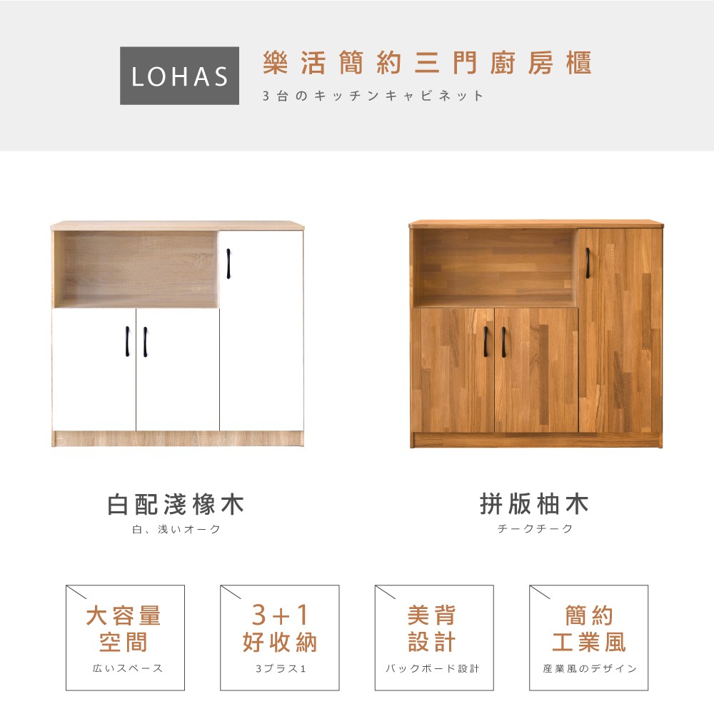 HOPMA美背簡約三門廚房櫃 台灣製造 電器櫥櫃 儲藏收納置物 微波爐櫃PC-D-910D淺橡(漂流)木配白|拼版柚木Cupboards & CabinetsHOPMA 合馬家具