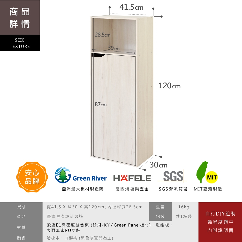 HOPMA日式單門四層櫃 台灣製造 收納儲藏櫃 置物書櫃G-1D1050淺橡(漂流)木|白櫻桃Cupboards & CabinetsHOPMA 合馬家具