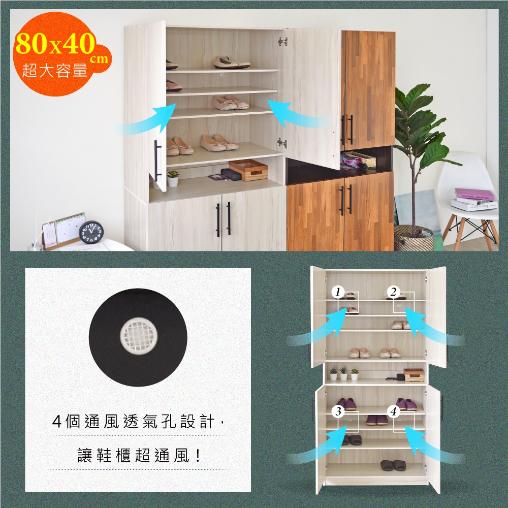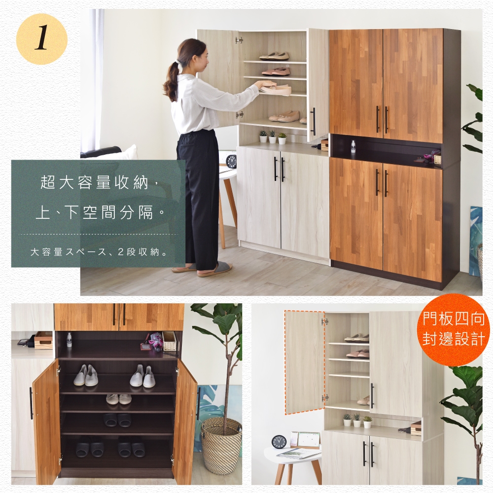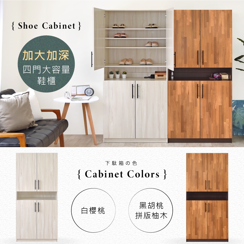 HOPMA 免組裝-加大加深四門大容量鞋櫃-專人組裝 玄關收納 大容量置物C-NW1990-A白櫻桃-專人組裝|黑胡桃配拼版柚木-專人組裝WardrobesHOPMA 合馬家具