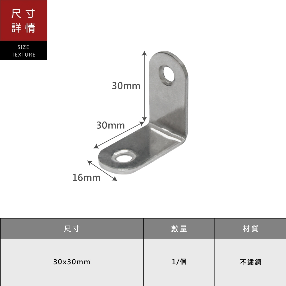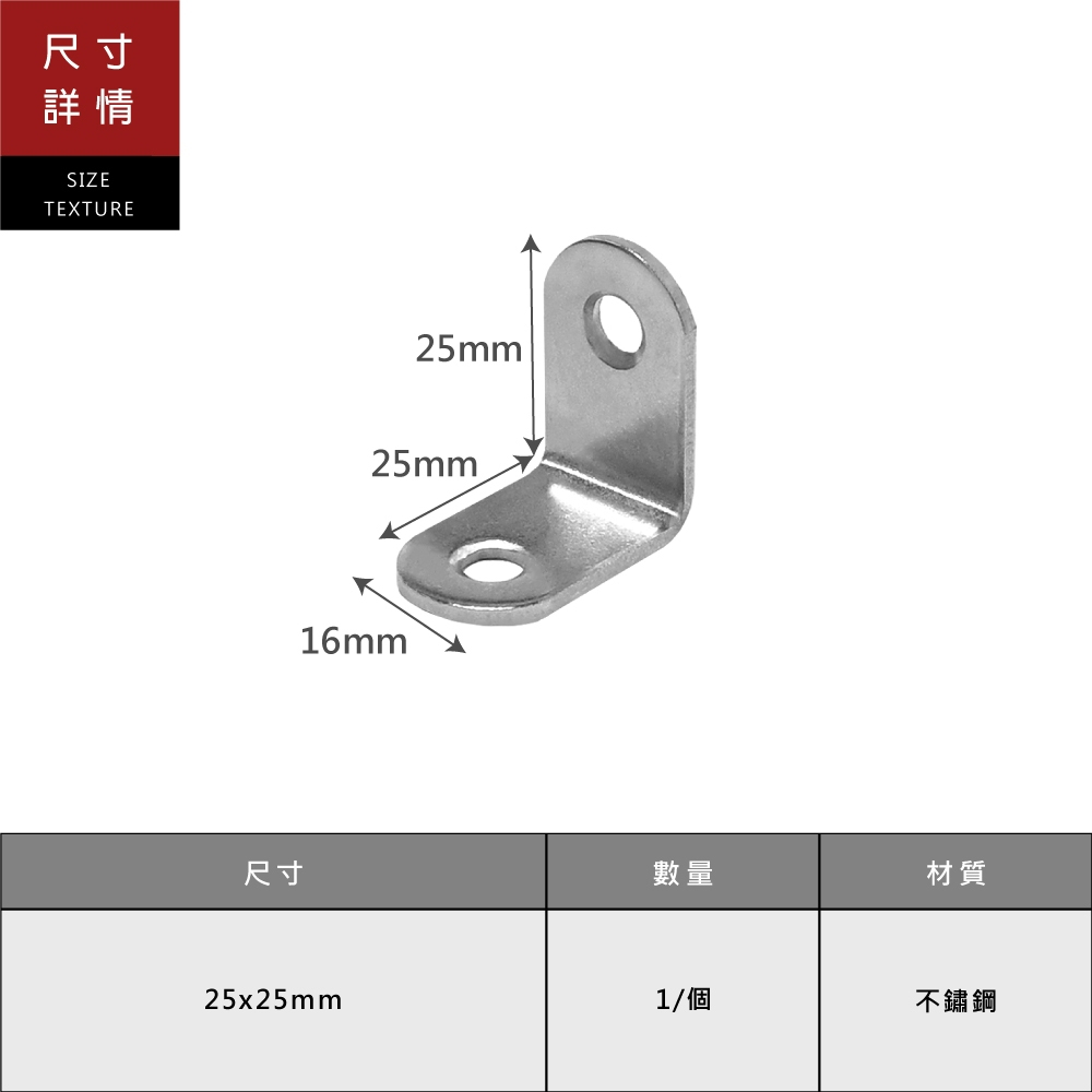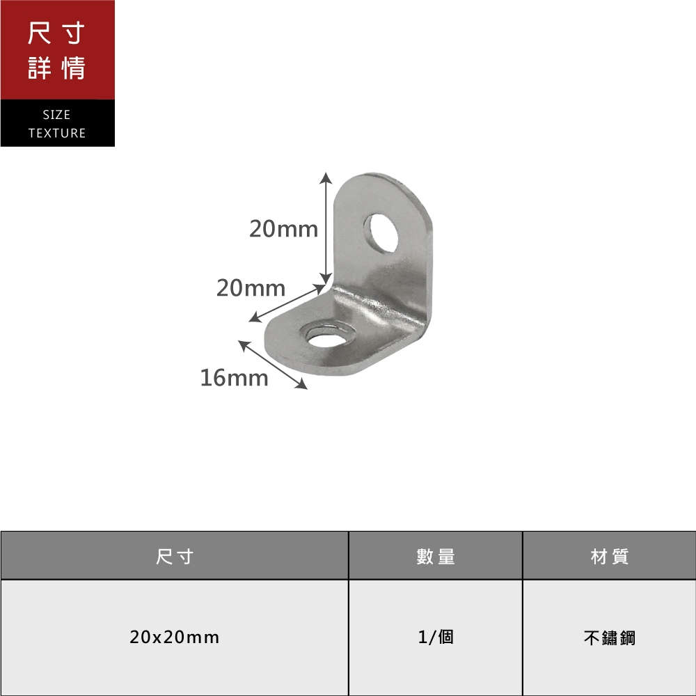 HOPMA 【五金配件滿百不含運才出貨】L型鐵片 不鏽鋼角鐵 角鐵 固定片 鐵片 木工 家具 補強K-L25x25mm-2孔(單筆最多500個)|30x30mm-2孔(單筆最多450個)|40x40mm-4孔(單筆最多360個)|50x50mm-4孔(單筆最多280個)|4x15mm螺絲-1支|20x20mm-2孔(單筆最多700個)OthersHOPMA 合馬家具