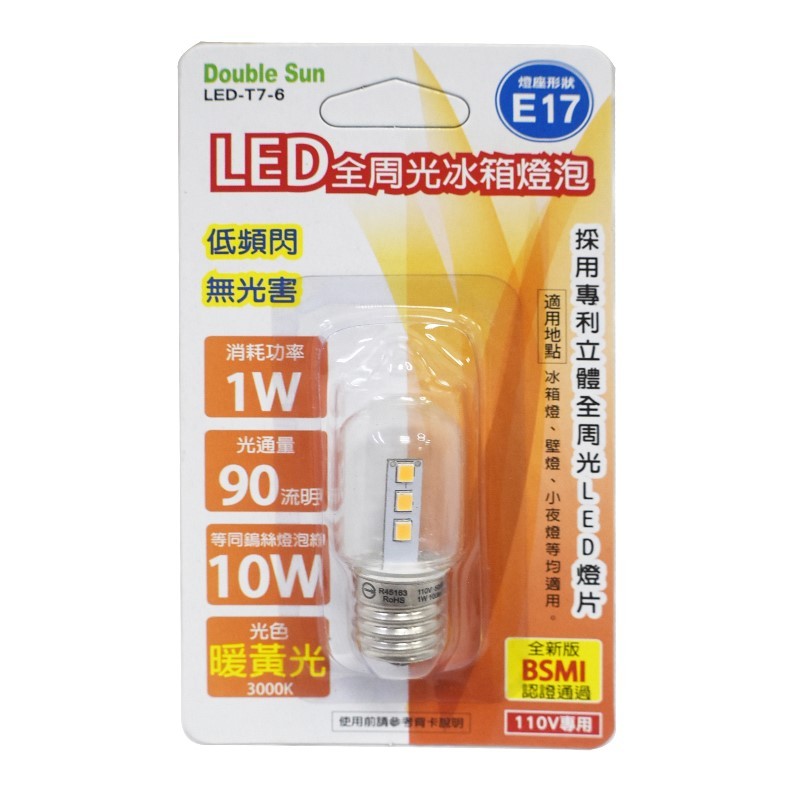 國民燈泡 LED-T7-6 燈泡 E17 LED 燈 冰箱 燈泡 神明燈泡【DK370】B黃光|A白光JOLIN久林批發~台灣出貨~滿50再結帳~