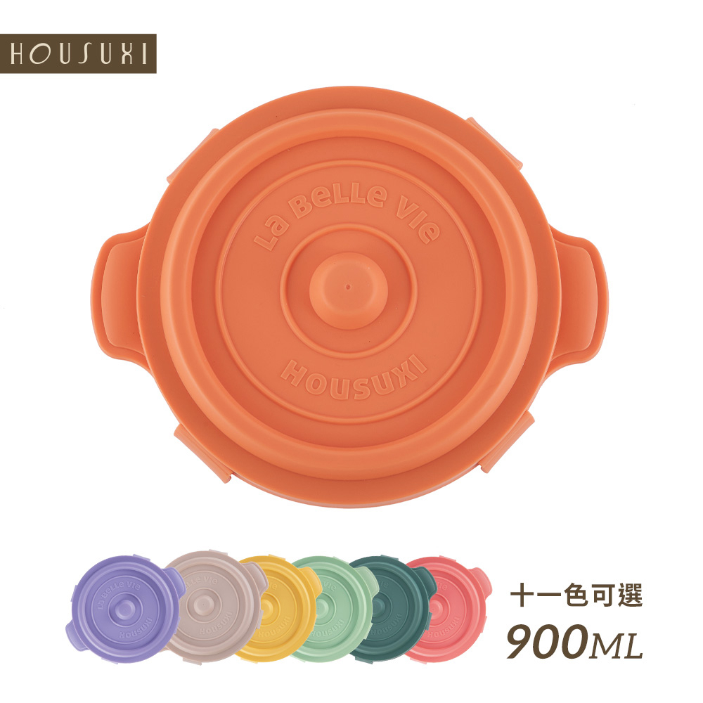 【HOUSUXI官方旗艦】鑄鐵鍋矽膠折折盒900ml-實色-絕版品售完不補水藍|薄青|森綠|暖橘|藤紫|茶棕|桃粉Food StorageHOUSUXI 舒希官方旗艦店