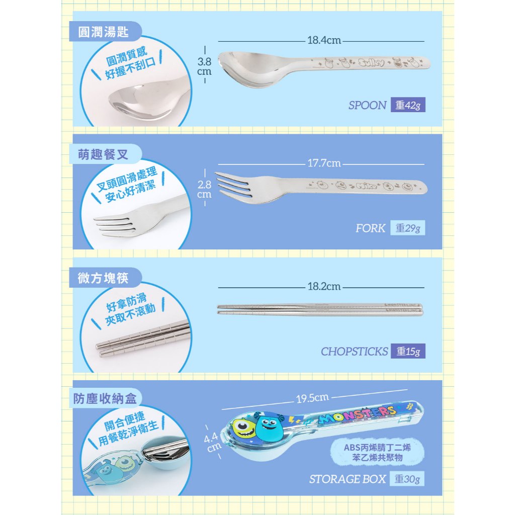 【HOUSUXI官方旗艦】迪士尼怪獸電力公司系列-316不鏽鋼餐具三件組怪獸電力公司-餐具三件組CutleriesHOUSUXI 舒希官方旗艦店