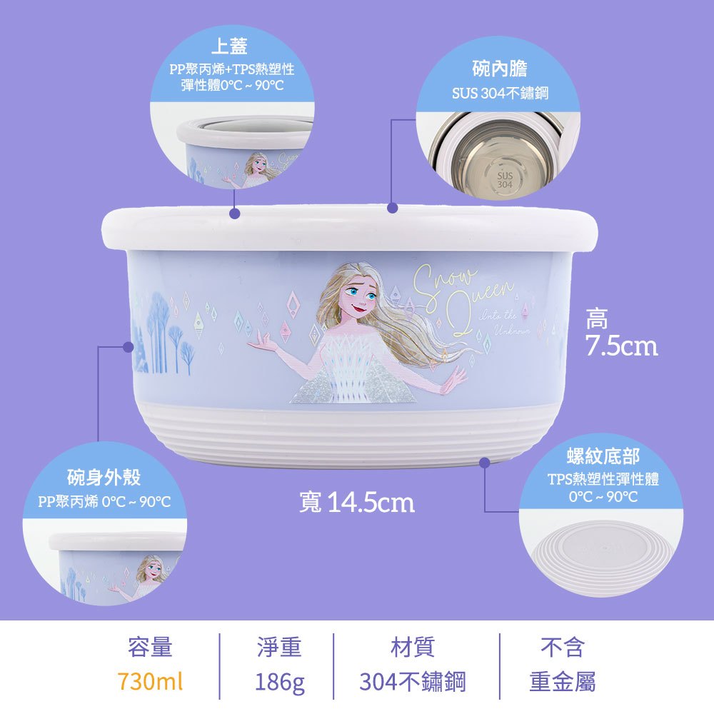 【HOUSUXI官方旗艦】迪士尼冰雪奇緣系列-不鏽鋼雙層隔熱碗(款式任選)冰雪奇緣-420ml|冰雪奇緣-730mlFood StorageHOUSUXI 舒希官方旗艦店