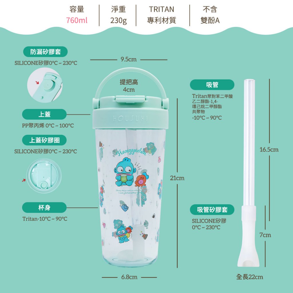 【HOUSUXI官方旗艦】三麗鷗人魚漢頓-Tritan輕透舒吸杯(附彈跳吸管)760mlTritan輕透舒吸杯-人魚漢頓Cups, Mugs & GlassesHOUSUXI 舒希官方旗艦店