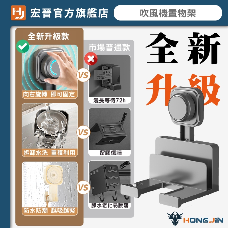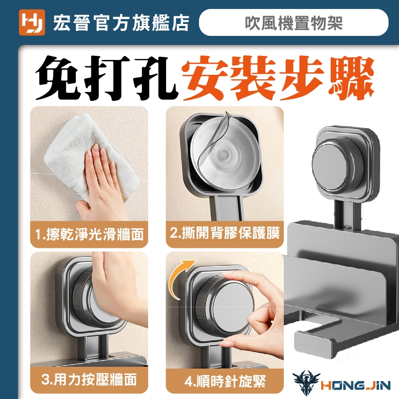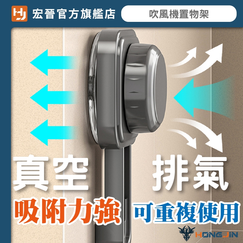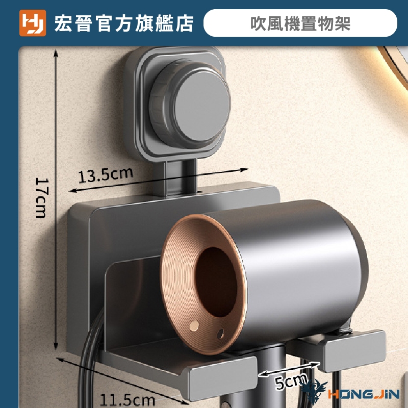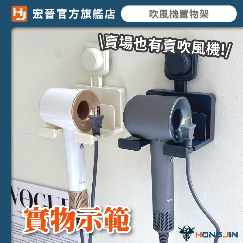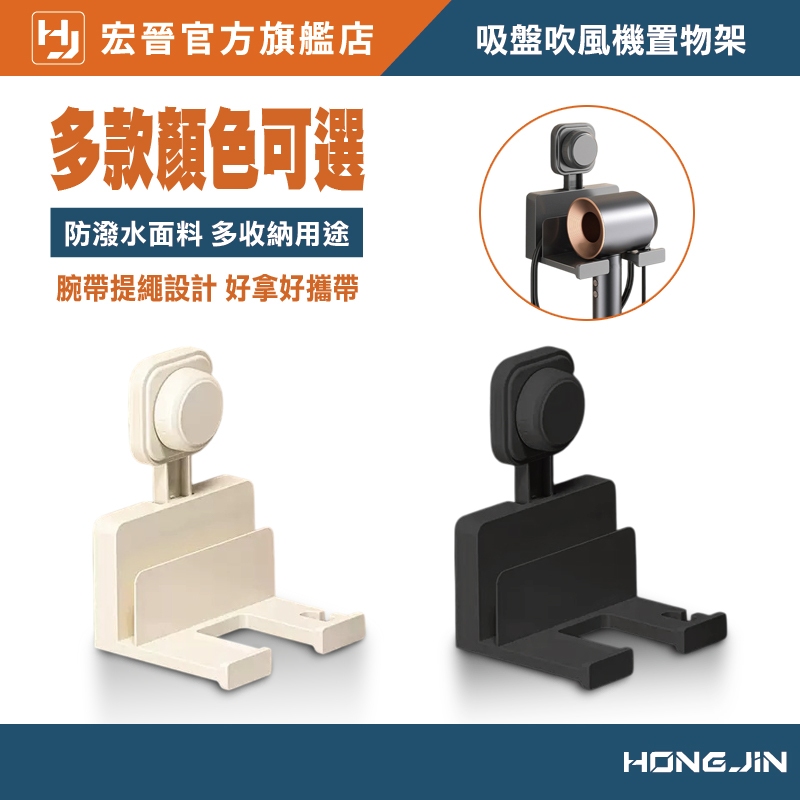 吹風機置物架 吸盤定位 免打洞 電線可收納 浴室吹風機收納架 壁掛架 重複使用奶白|槍灰HooksHONG JIN 宏晉 |3C資訊廣場