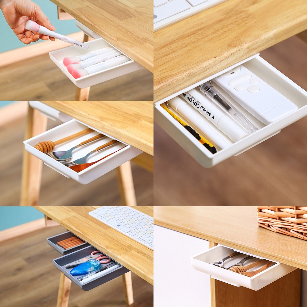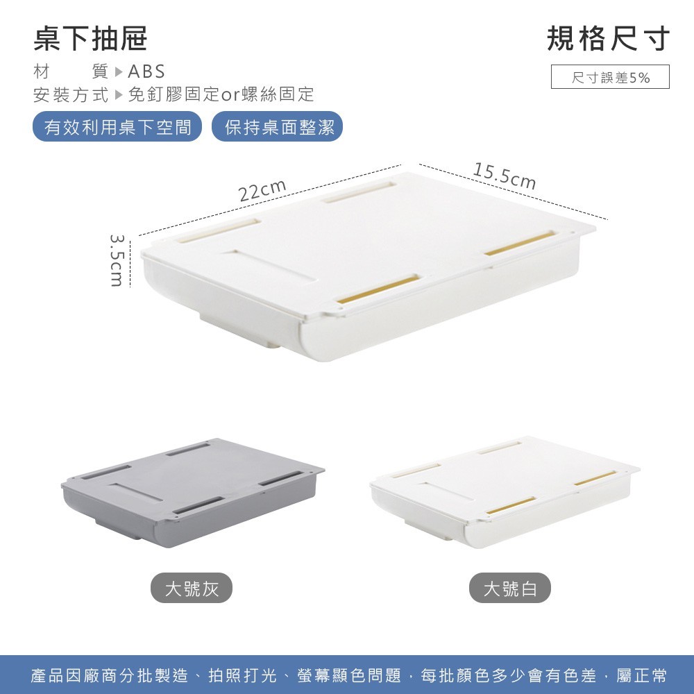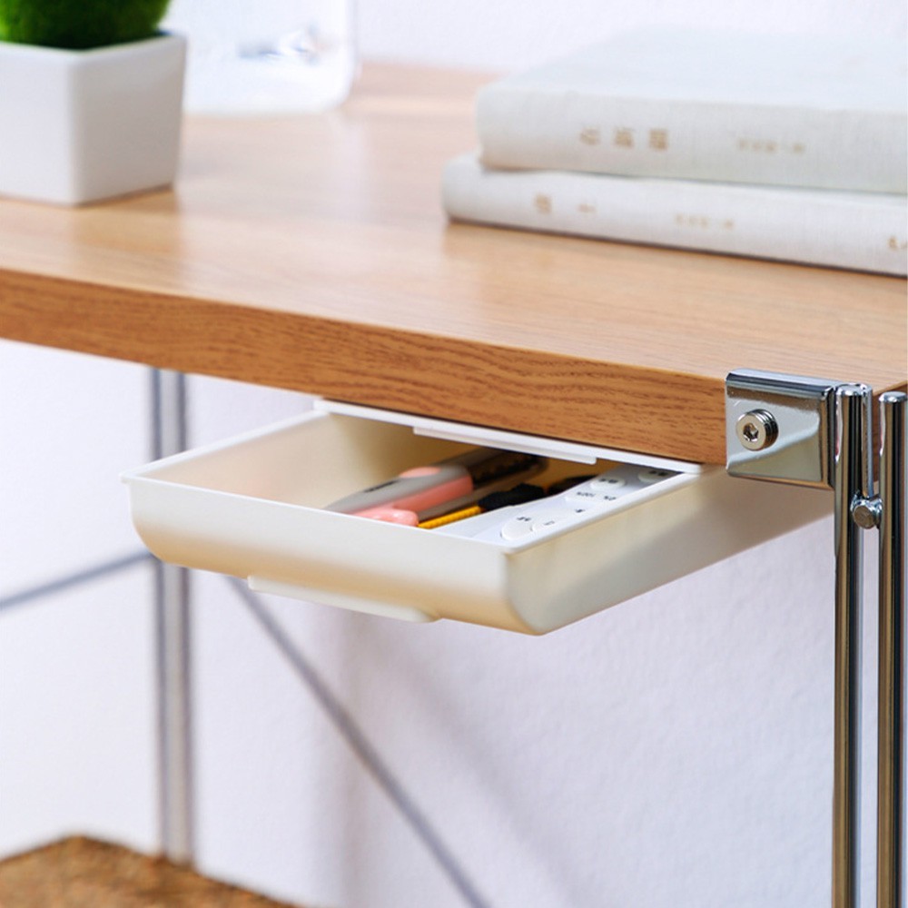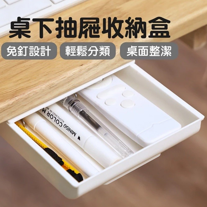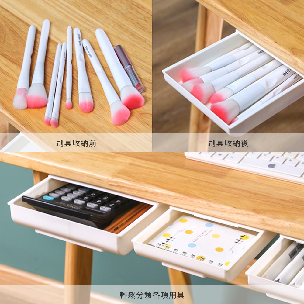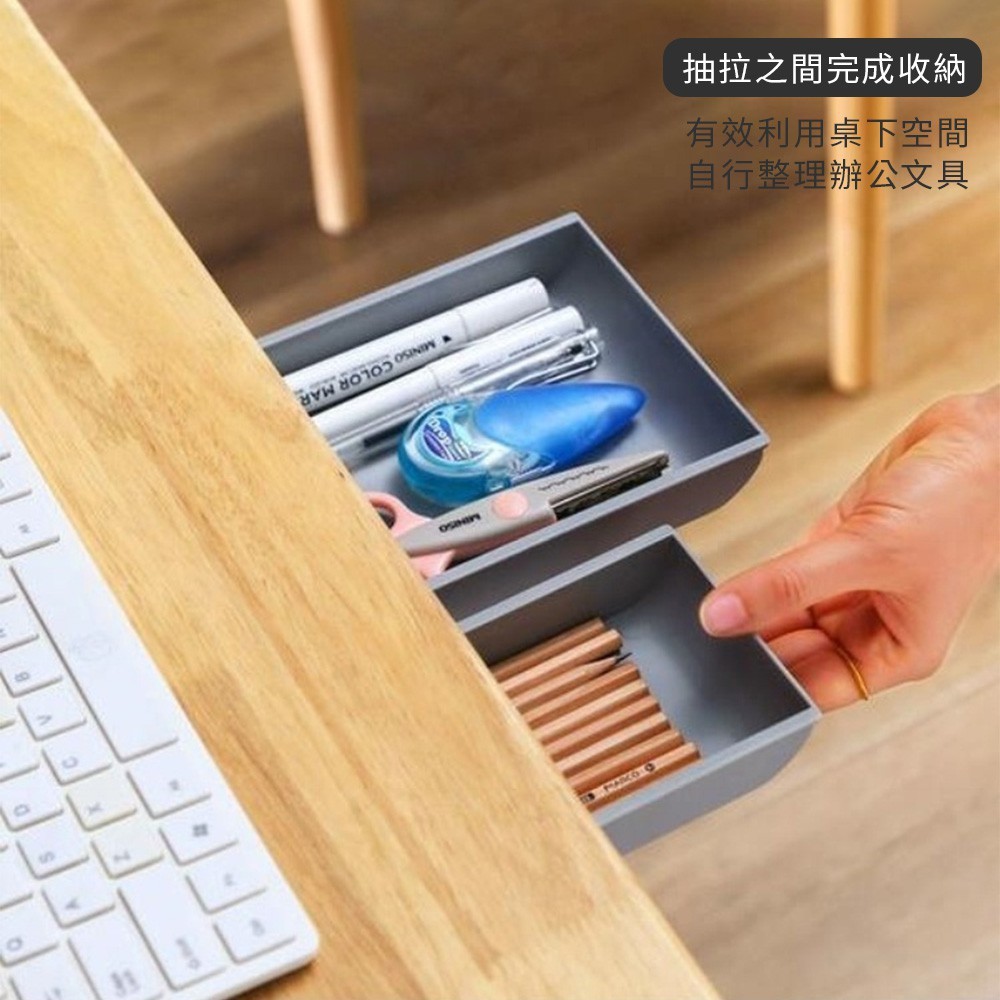 【LAVIDA嚴選】桌下抽屜式收納盒 無印風 隱形抽屜 隱形收納盒 辦公桌收納 收納 文具收納 免打孔 隱藏式 筆筒01.大號白|02.大號灰Desk OrganizersLAVIDA 育兒好好玩!
