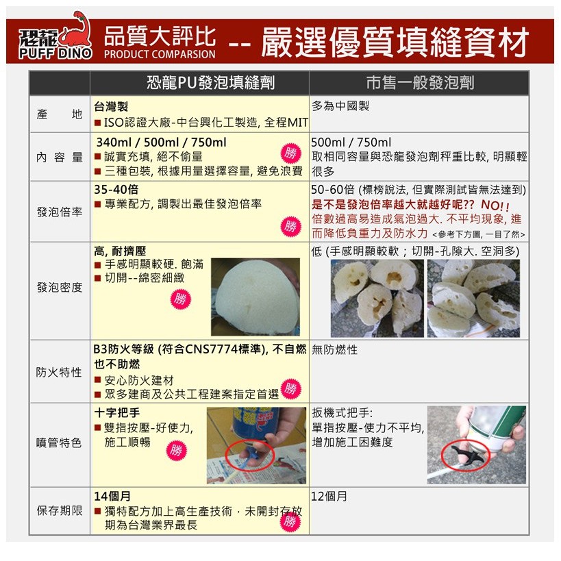 恐龍 PU發泡填縫劑 恐龍發泡劑 PU發泡劑 裂縫填補劑 340ml 500ml 750ml