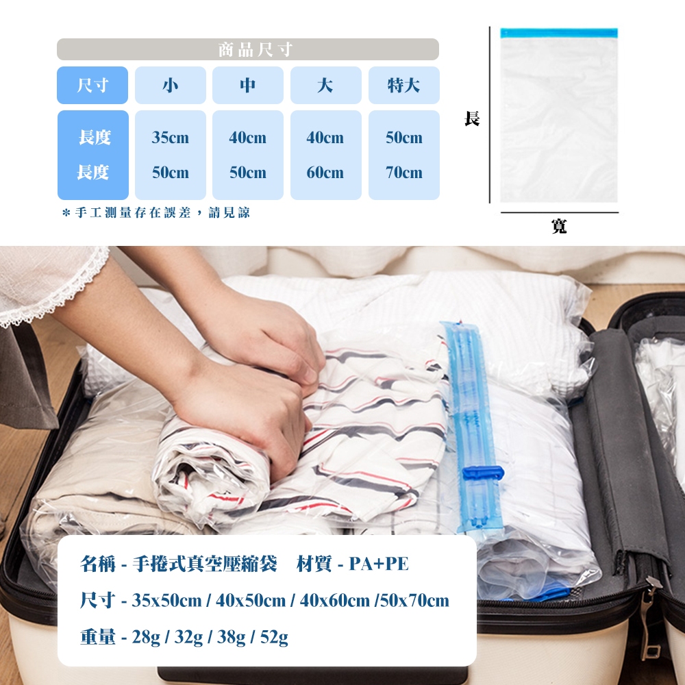 換季必備【手捲式真空壓縮袋】 壓縮袋 收納袋 旅行袋 真空袋 旅行收納 手捲式壓縮袋 衣物收納 棉被收納袋50×70|40×60|40×50|35x50Wardrobe OrganizersH MOD髮摩 品牌旗艦館