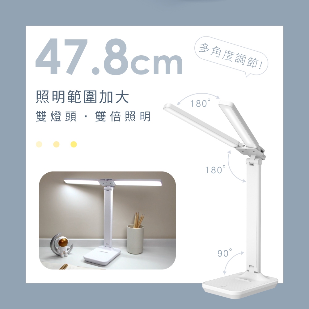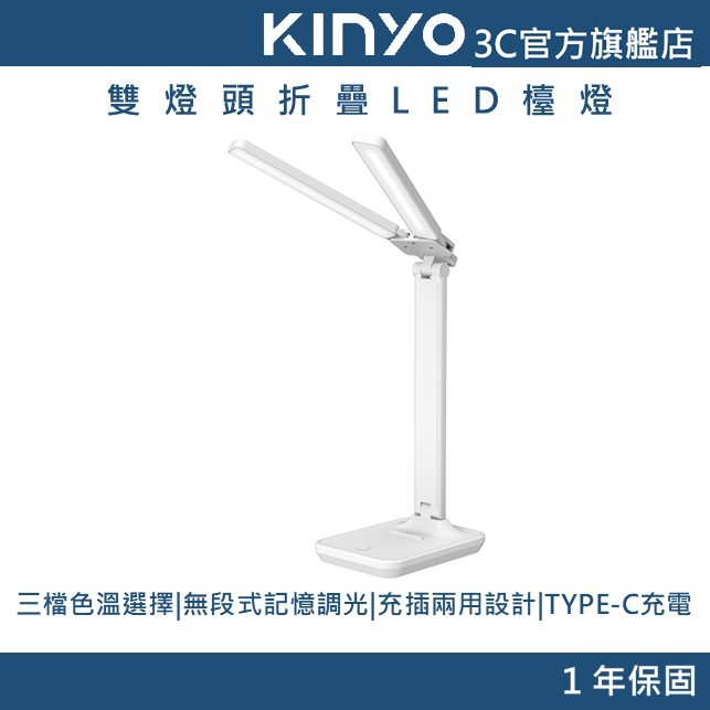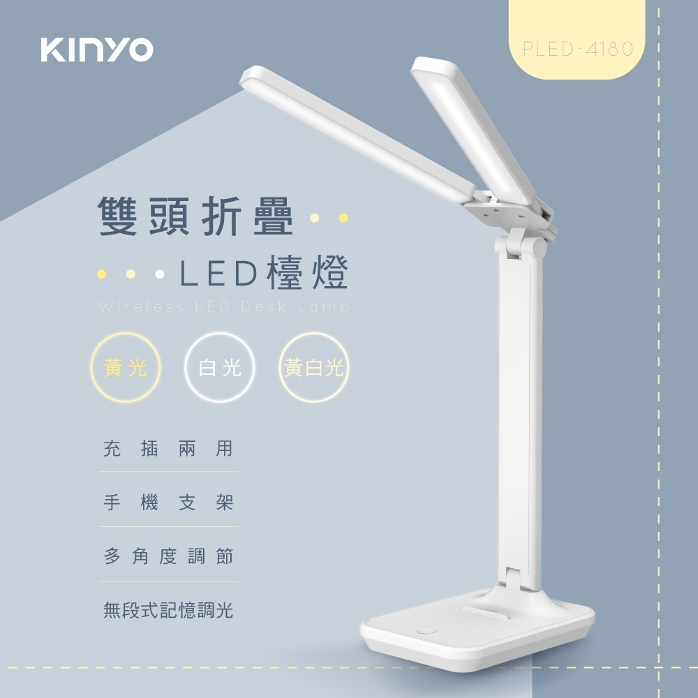 【KINYO官方直營】雙燈頭折疊LED檯燈 (PLED) 三檔色溫選擇 無段式記憶調光 90度折疊設計 充插兩用設計PLED4180 雙燈頭折疊LED檯燈KINYO官方旗艦店_3C館