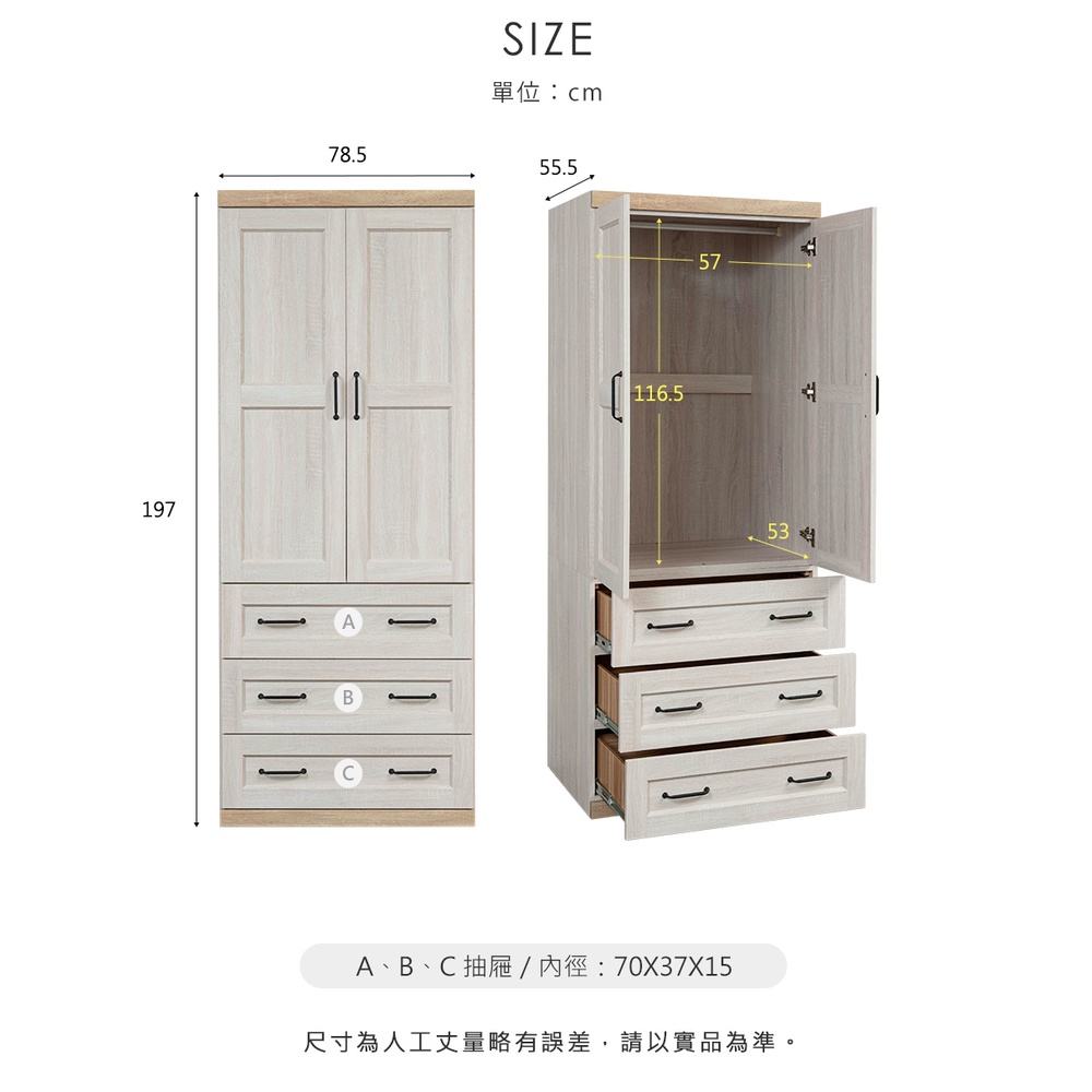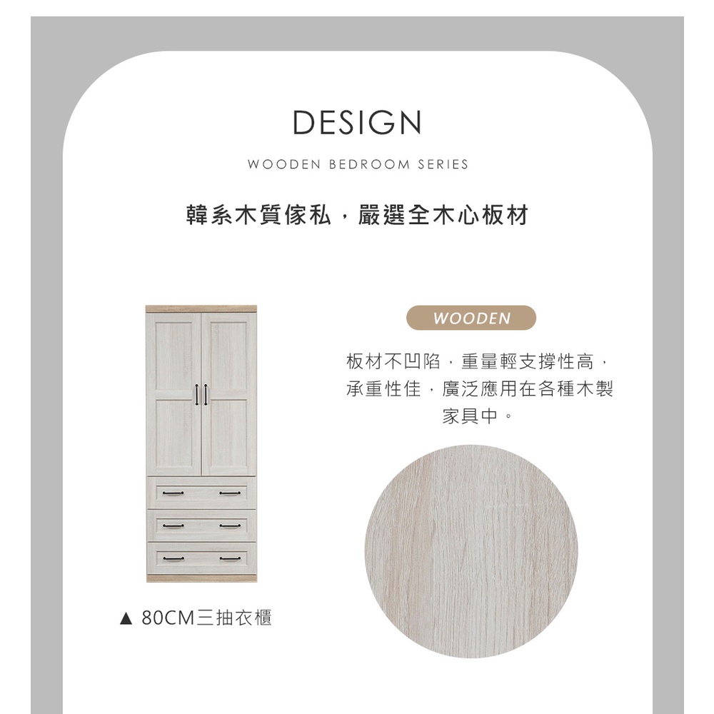 【H&D東稻家居】韓研守3尺三抽衣櫃/衣櫥/衣物收納白梧桐WardrobesH&D東稻家居