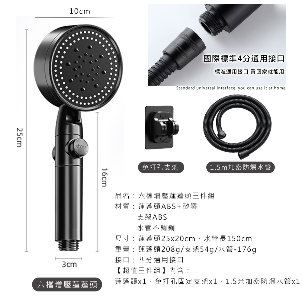 升級六檔【三件組 增壓蓮蓬頭】蓮蓬頭 加壓 增壓蓮蓬頭 大面積噴頭 浴室 過濾 花灑 SPA按摩 加壓三件組Showerheads & Bidet SpraysH MOD髮摩 品牌旗艦館