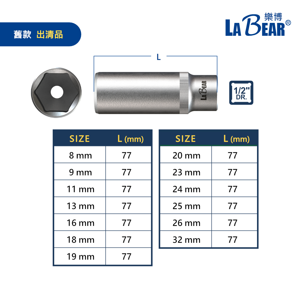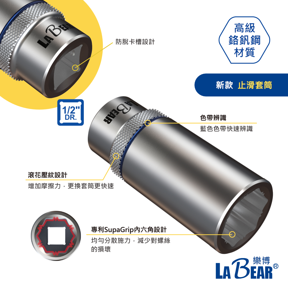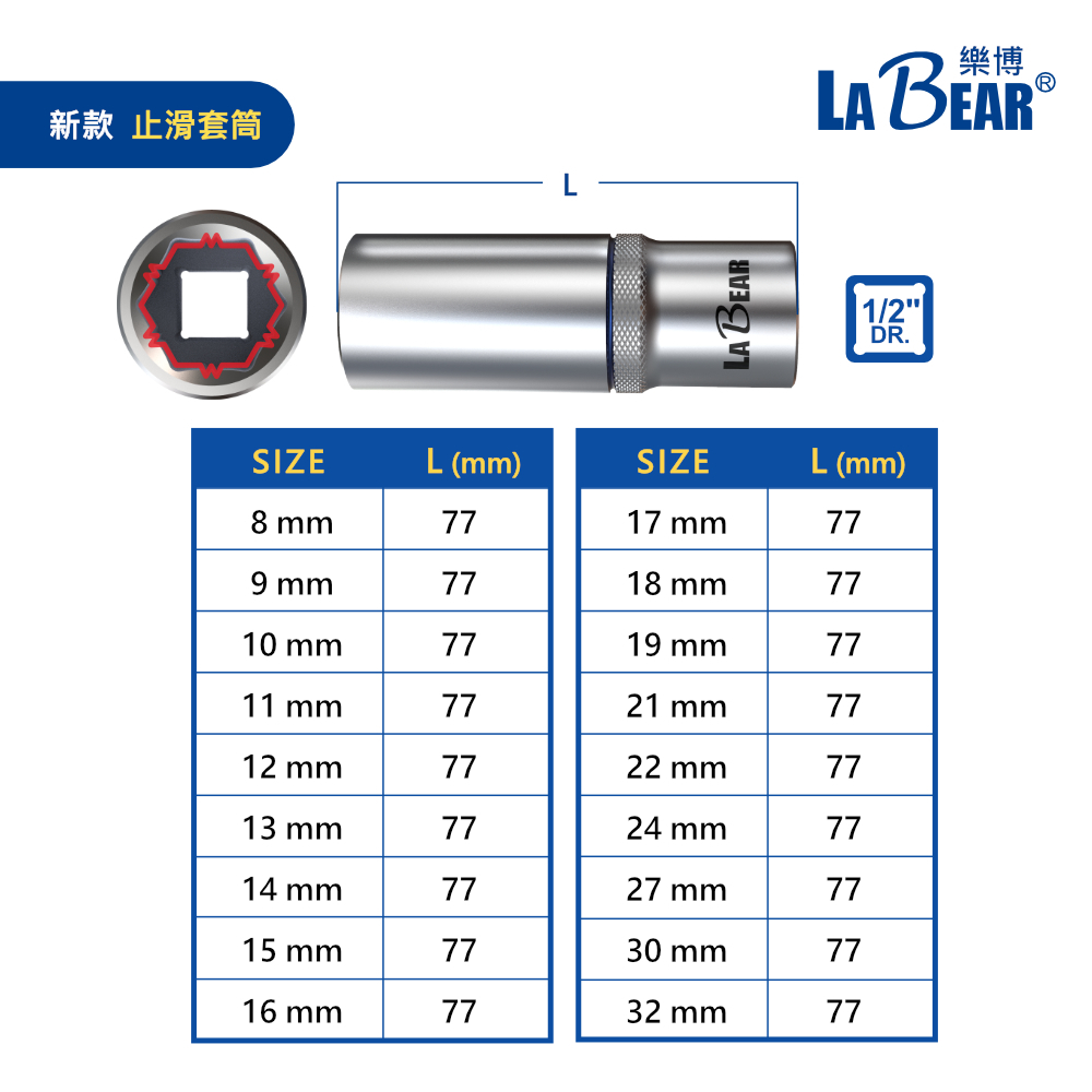 【LaBear樂博】4分 止滑長套筒 8-32mm 1/2″ Dr. 防滑套筒 長套筒 止滑套筒 手動套筒 專利設計4分 新款-止滑長套,8mm 長套|4分 新款-止滑長套,9mm 長套|4分 新款-止滑長套,10mm 長套|4分 新款-止滑長套,11mm 長套|4分 新款-止滑長套,12mm 長套|4分 新款-止滑長套,13mm 長套|4分 新款-止滑長套,14mm 長套|4分 新款-止滑長套,15mm 長套|4分 新款-止滑長套,16mm 長套|4分 新款-止滑長套,17mm 長套|4分 新款-止滑長套,18mm 長套|4分 新款-止滑長套,19mm 長套|4分 新款-止滑長套,20mm 長套|4分 新款-止滑長套,21mm 長套|4分 新款-止滑長套,22mm 長套|4分 新款-止滑長套,24mm 長套|4分 新款-止滑長套,25mm 長套|4分 舊款-長套出清品,8mm 長套|4分 舊款-長套出清品,9mm 長套|4分 舊款-長套出清品,10mm 長套|4分 舊款-長套出清品,11mm 長套|4分 舊款-長套出清品,12mm 長套|4分 舊款-長套出清品,13mm 長套|4分 舊款-長套出清品,14mm 長套|4分 舊款-長套出清品,15mm 長套|4分 舊款-長套出清品,16mm 長套|4分 舊款-長套出清品,17mm 長套|4分 舊款-長套出清品,18mm 長套|4分 舊款-長套出清品,19mm 長套|4分 舊款-長套出清品,20mm 長套|4分 舊款-長套出清品,21mm 長套|4分 舊款-長套出清品,22mm 長套|4分 舊款-長套出清品,24mm 長套|4分 舊款-長套出清品,25mm 長套|4分 新款-止滑長套,27mm 長套|4分 新款-止滑長套,30mm 長套|4分 舊款-長套出清品,27mm 長套|4分 舊款-長套出清品,30mm 長套|4分 新款-止滑長套,32mm 長套|4分 舊款-長套出清品,32mm 長套ToolsLaBear 樂博工具